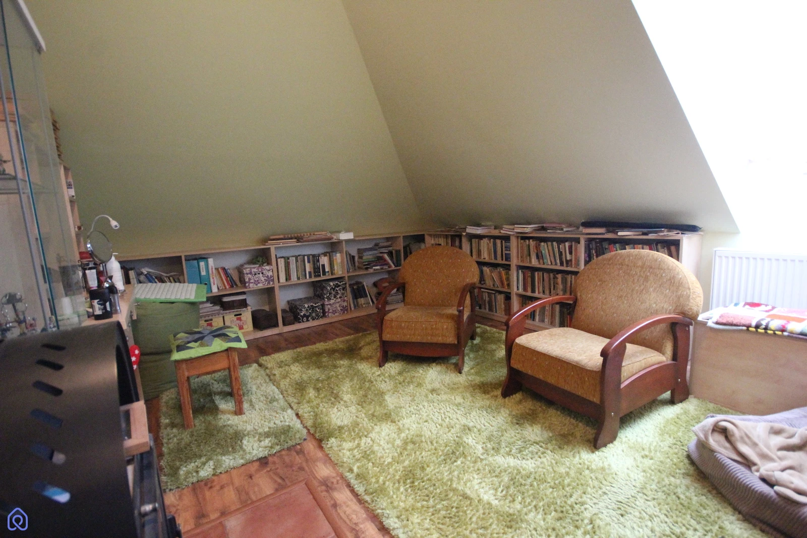 - dużą przestrzeń dzienną, gdzie znajduje się czytelnia z kominkiem, jadalnia, kuchnią, toaleta i ogród zimowy.