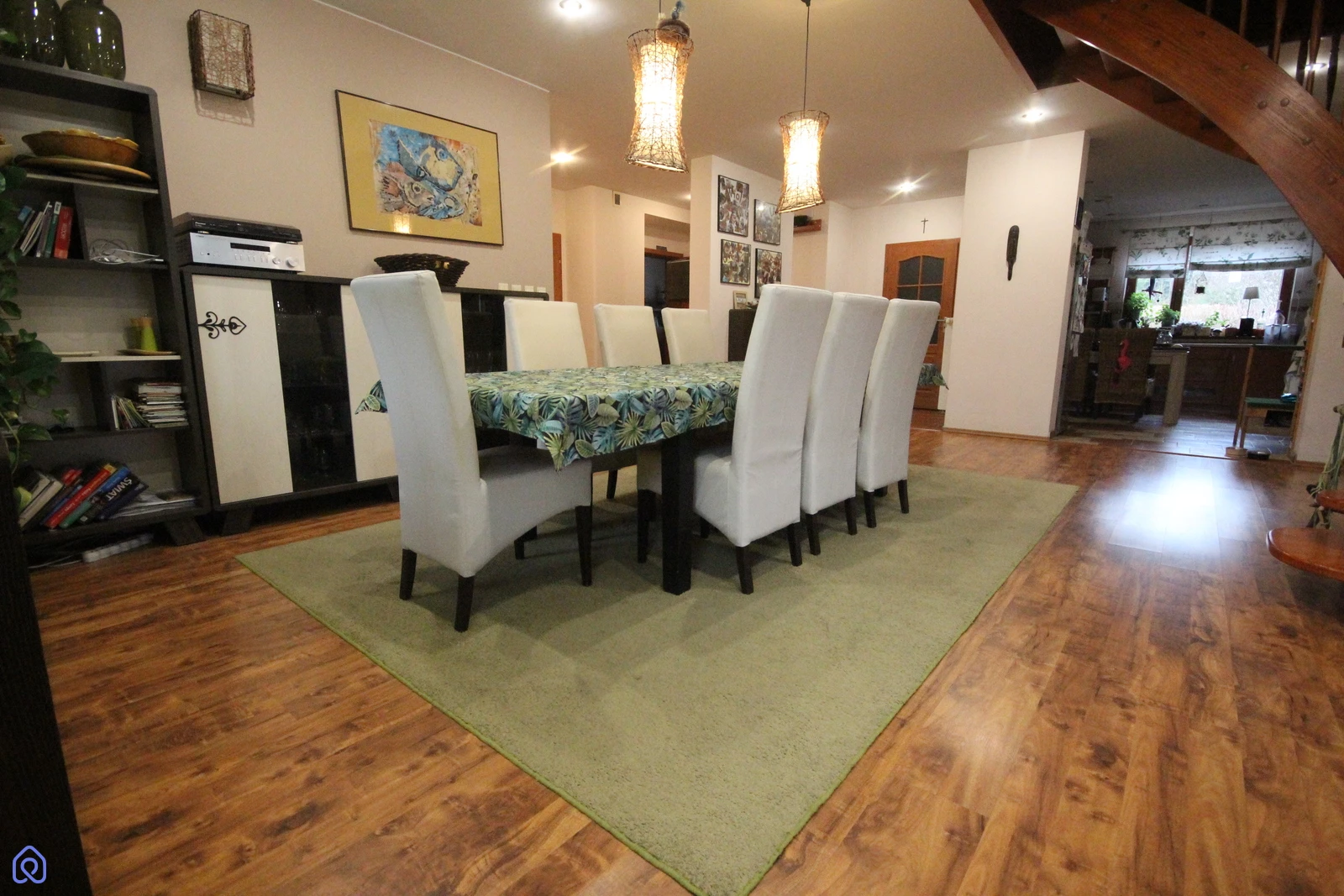 Dom wybudowany w 2005 roku na działce o powierzchni 983m2, zapewnia odpowiednią przestrzeń życiową dla wymagającej rodziny.