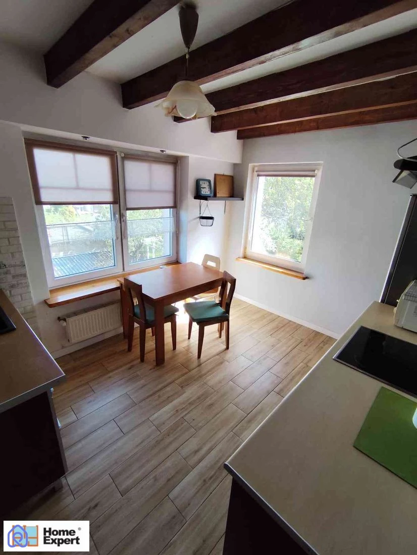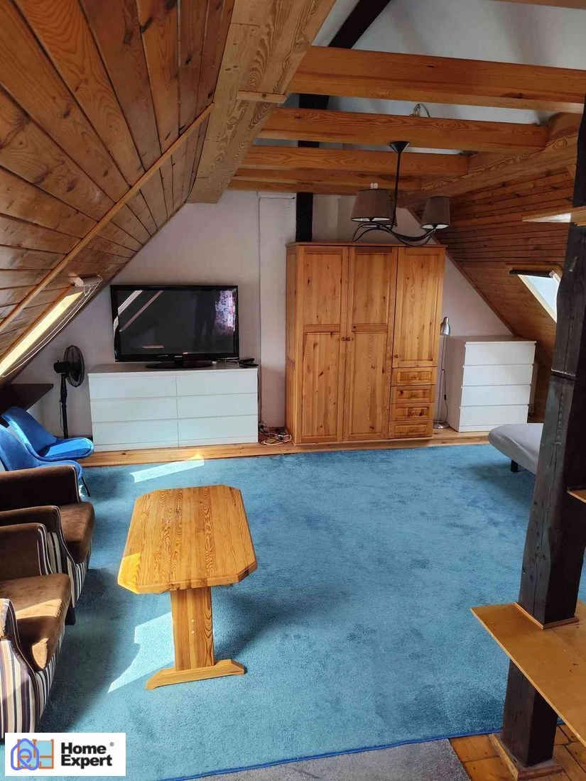 Mieszkanie znajduje się na pierwszym piętrze oraz poddaszu, z dostępem do ogródka o powierzchni ok. 85 m².