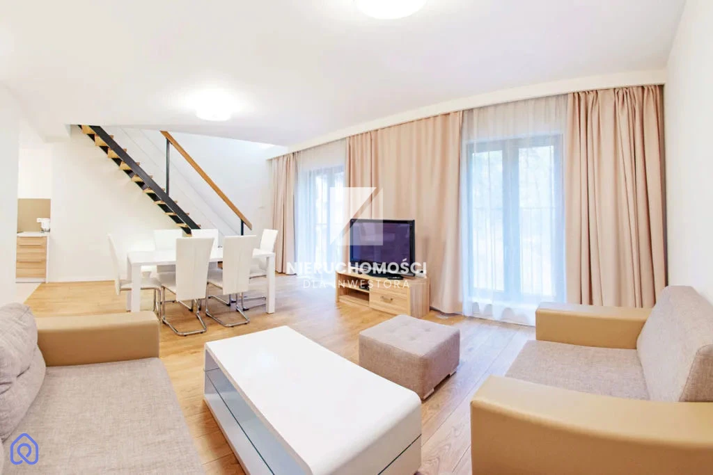 Układ wnętrza: Na pierwszym poziomie znajduje się przestronny salon z jadalnią oraz aneksem kuchennym, idealny do wspólnego spędzania czasu z rodziną i przyjaciółmi. Wygodne meble i duża szafa zwiększają funkcjonalność tej przestrzeni, a przestronna łazienka wyposażona w pralkę dodaje komfortu codziennym czynnościom. Na drugim poziomie, do którego prowadzą eleganckie schody, znajdują się cztery komfortowe sypialnie oraz dodatkowa, przestronna szafa.
