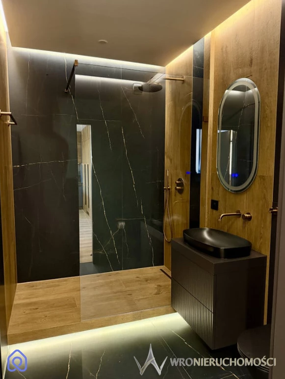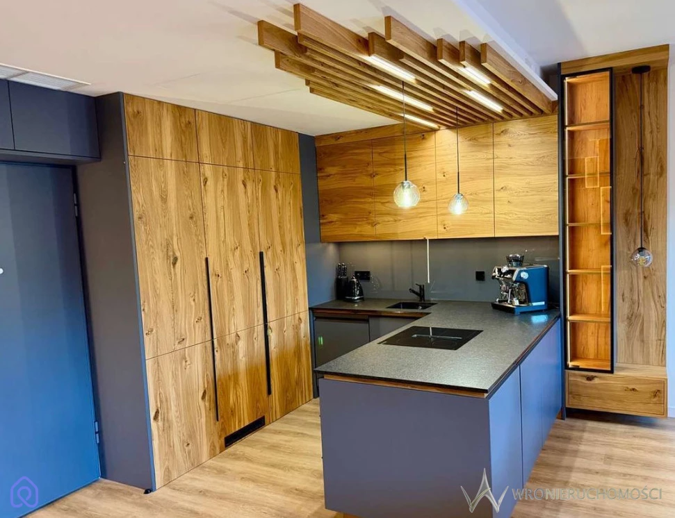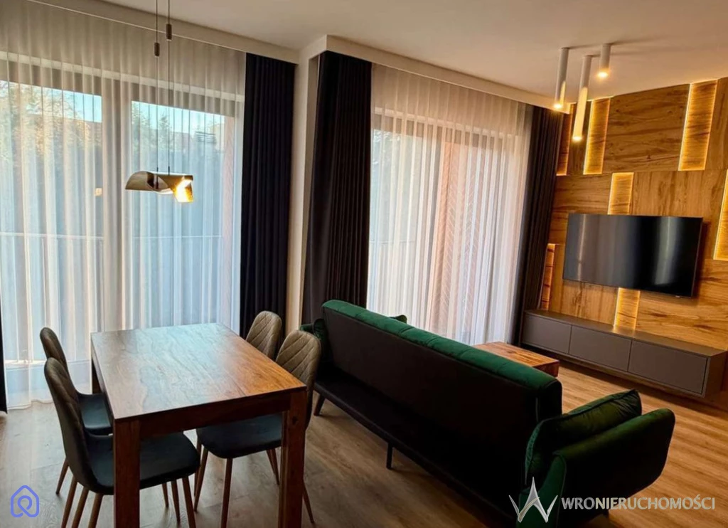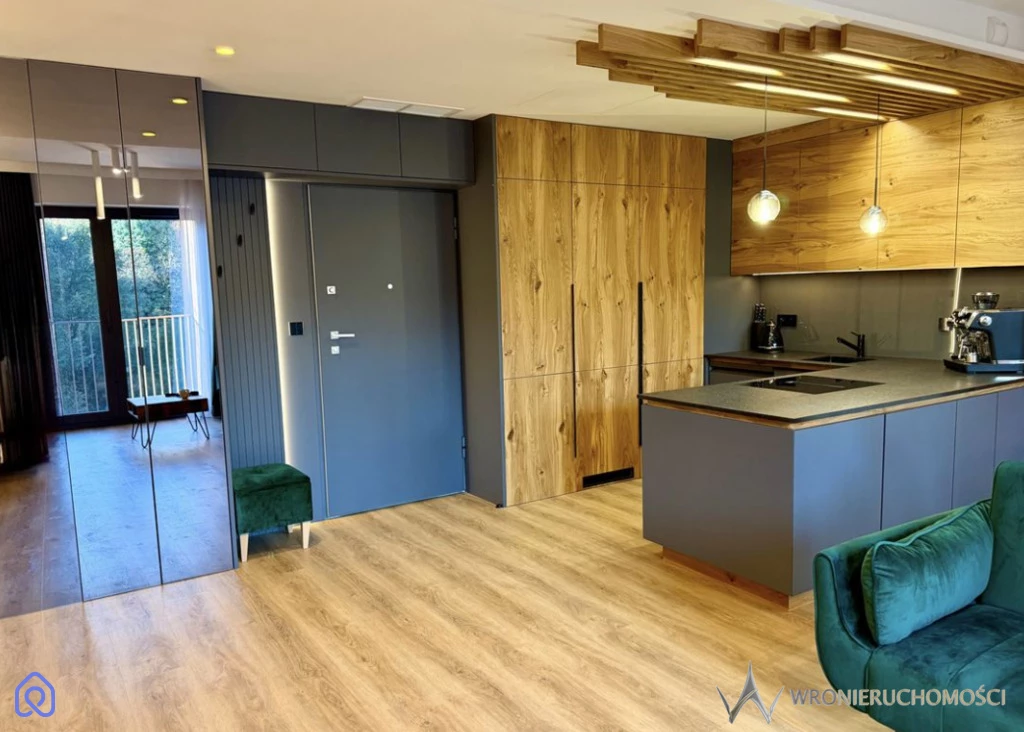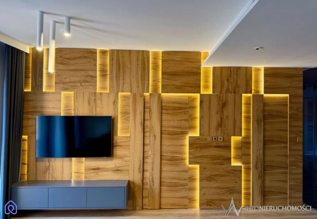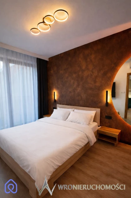 Apartament został zaprojektowany z dużą dbałością o detale i komfort przyszłego najemcy. Przestronny salon połączony z aneksem kuchennym tworzy funkcjonalną i jasną przestrzeń dzienną, idealną zarówno do odpoczynku, jak i pracy. Kuchnia wyposażona jest w wysokiej klasy sprzęt AGD, a całość wykończona została materiałami wysokiej jakości. Sypialnia oferuje wygodną strefę relaksu oraz pojemne zabudowy, natomiast łazienka utrzymana jest w nowoczesnym, eleganckim stylu.