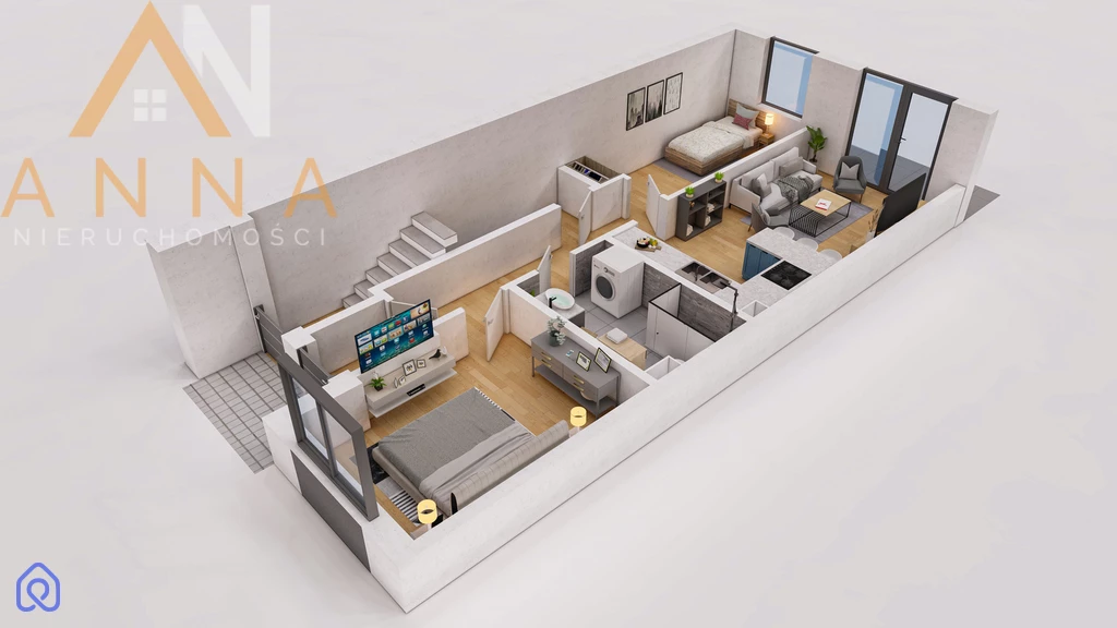 Salon z aneksem kuchennym o powierzchni 19,95 m2Łazienka o powierzchni 7.61 m2Korytarz 8.26 m2Pokój o powierzchni 14,04 m2Pokój o powierzchni 11,18 m2Miejsce postojoweWłasny, ogrodzony ogródek około 124 m2!