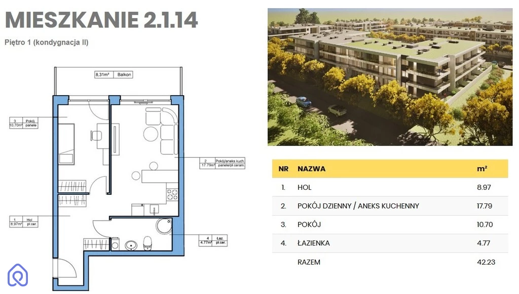 Powierzchnia: 42.23 m2