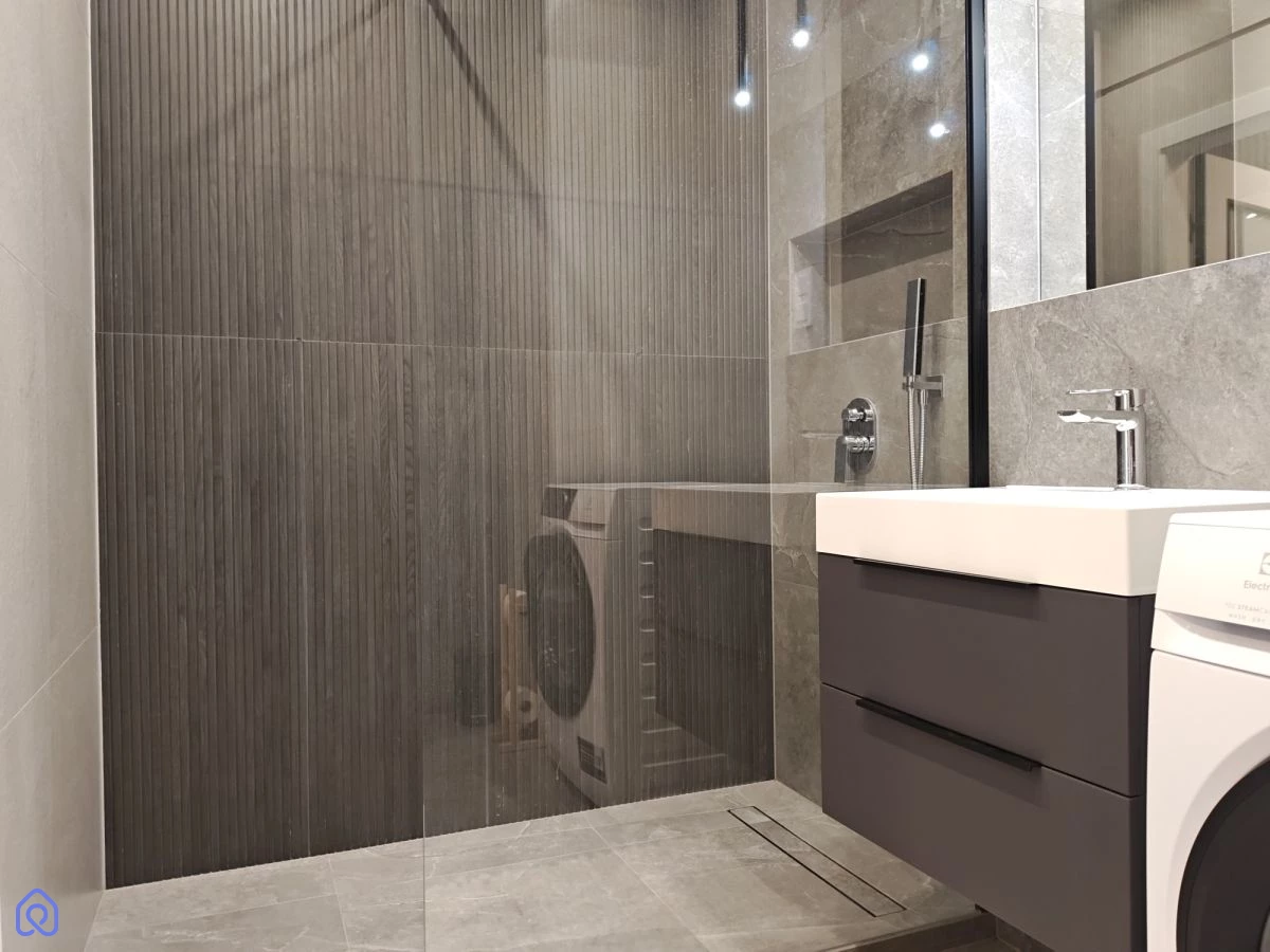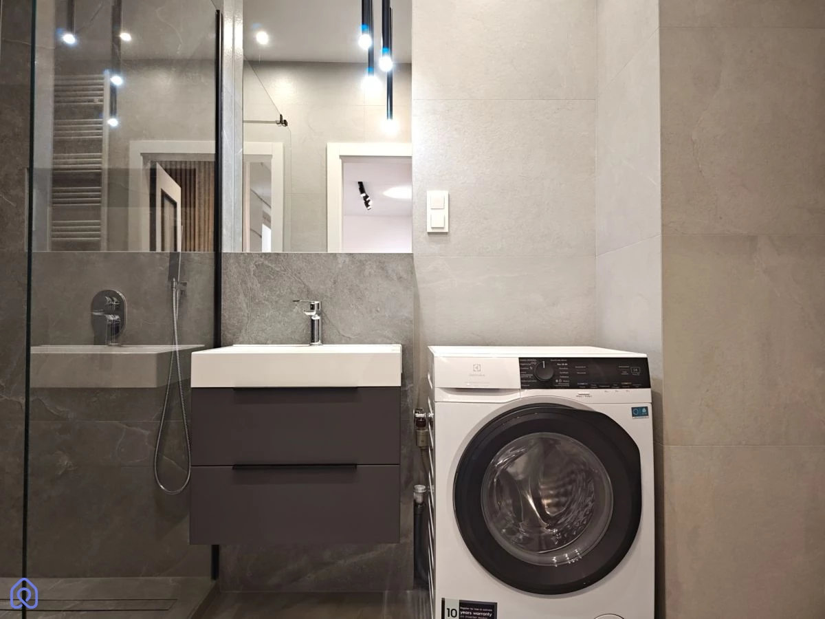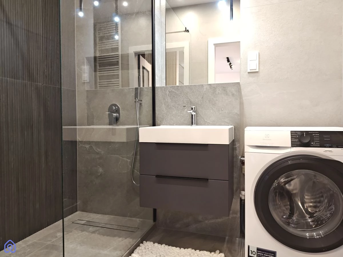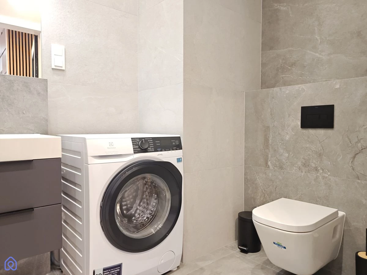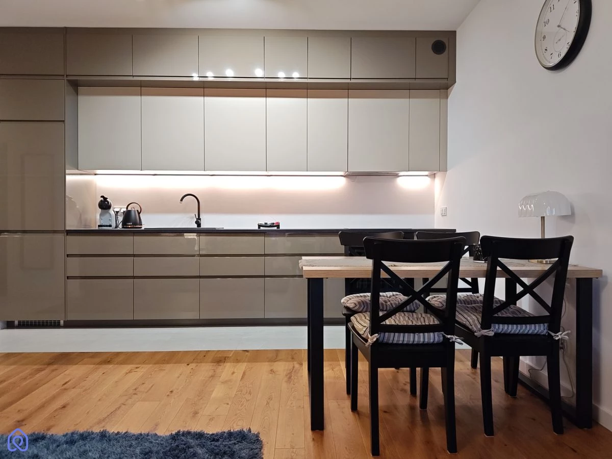Aneks kuchenny jest kompletnie przygotowany do użytkowania, łącznie z wyposażeniem domowym. W łazience znajduje się prysznic typu walk-in z odpływem liniowym. Ogrzewanie oraz ciepła woda są z sieci miejskiej, a w mieszkaniu nie ma gazu.