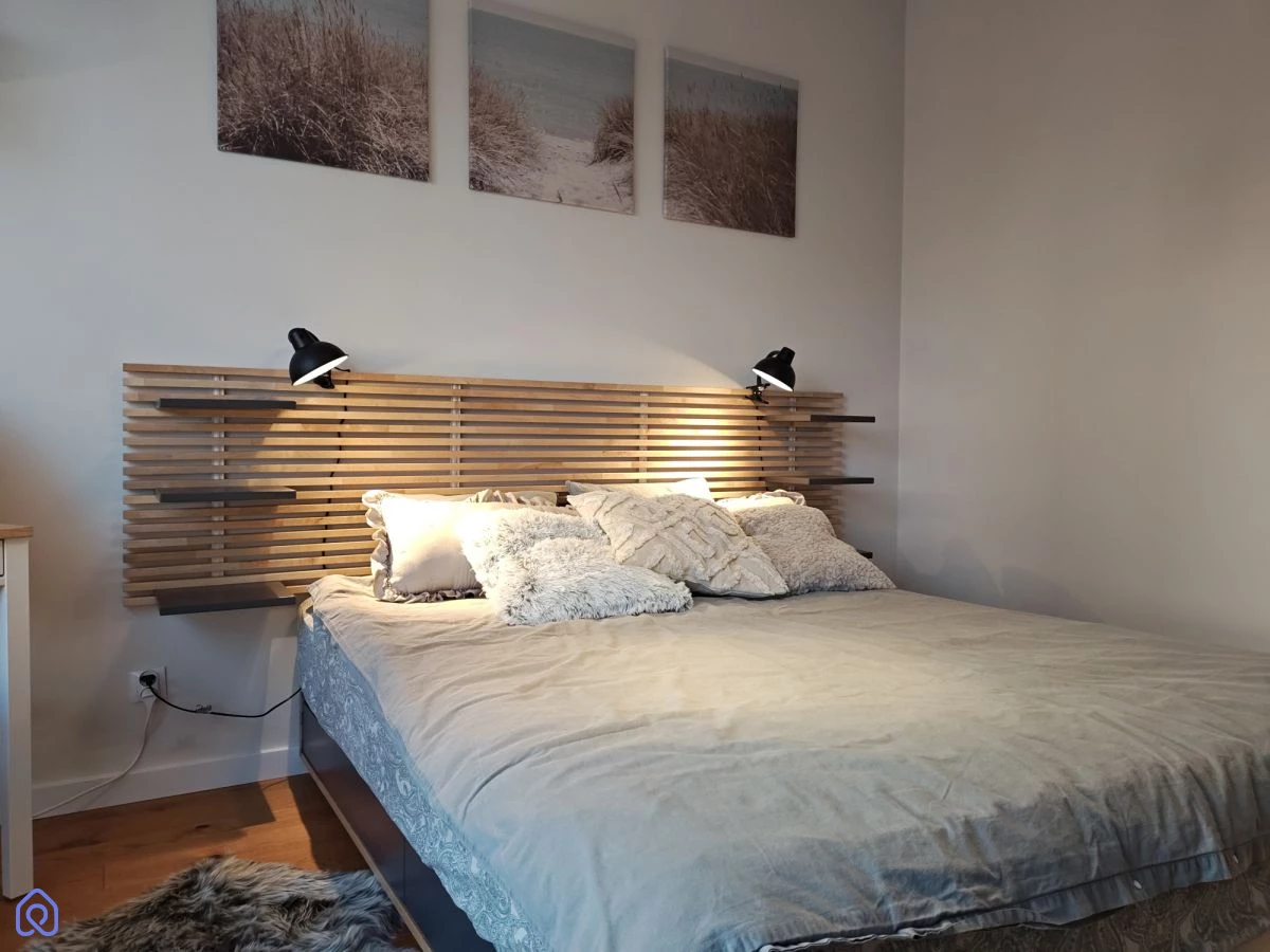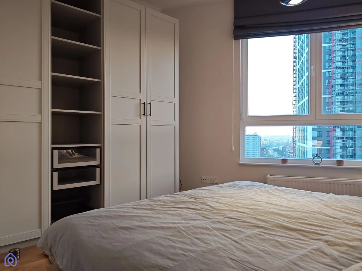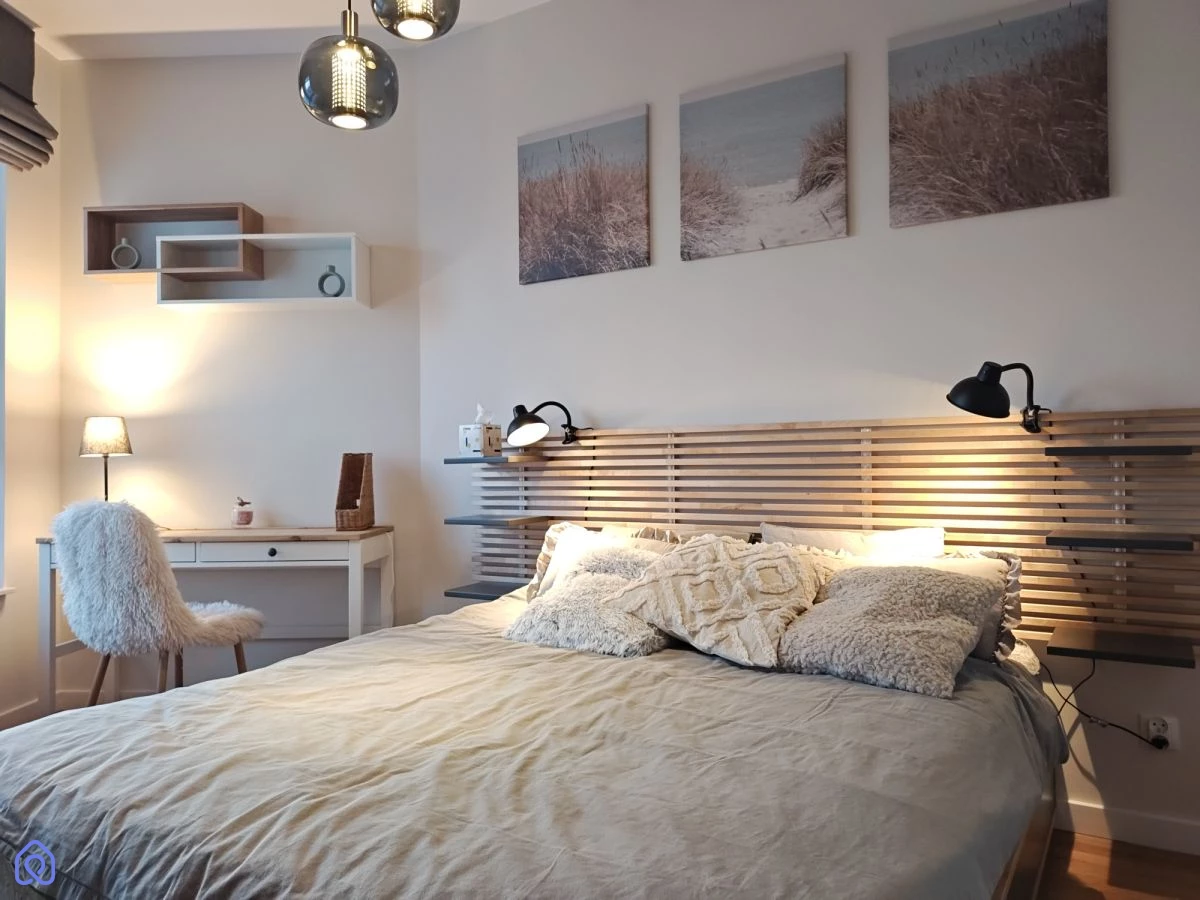 Mieszkanie jest w pełni umeblowane i wyposażone, gotowe do wprowadzenia. W sypialni znajduje się łóżko dwuosobowe, duża szafa oraz biurko. Przewidziano dużo miejsca do przechowywania, co ułatwia codzienne funkcjonowanie.