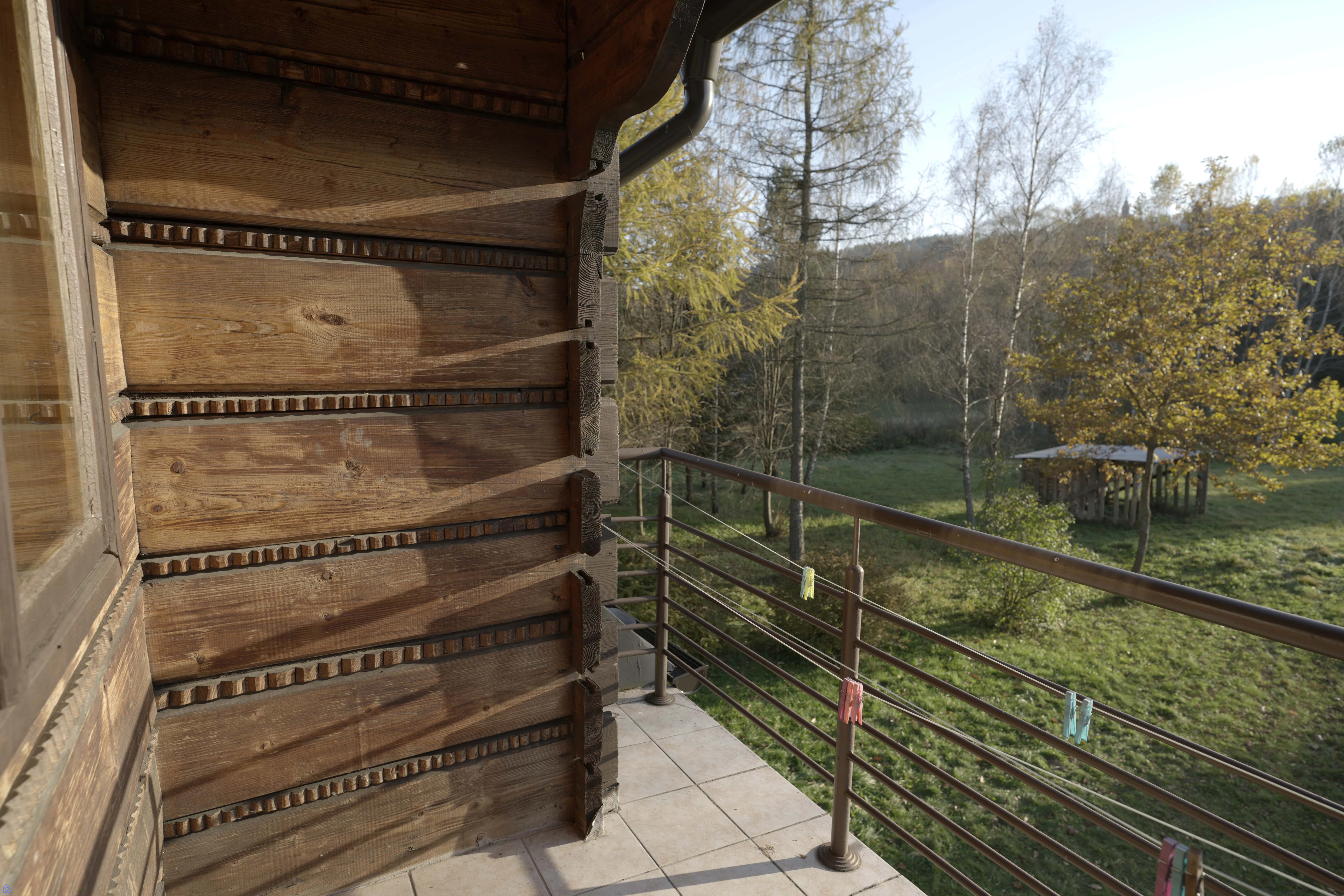 murowany, natomiast spora część wykończona jest w drewnie, co nadaje