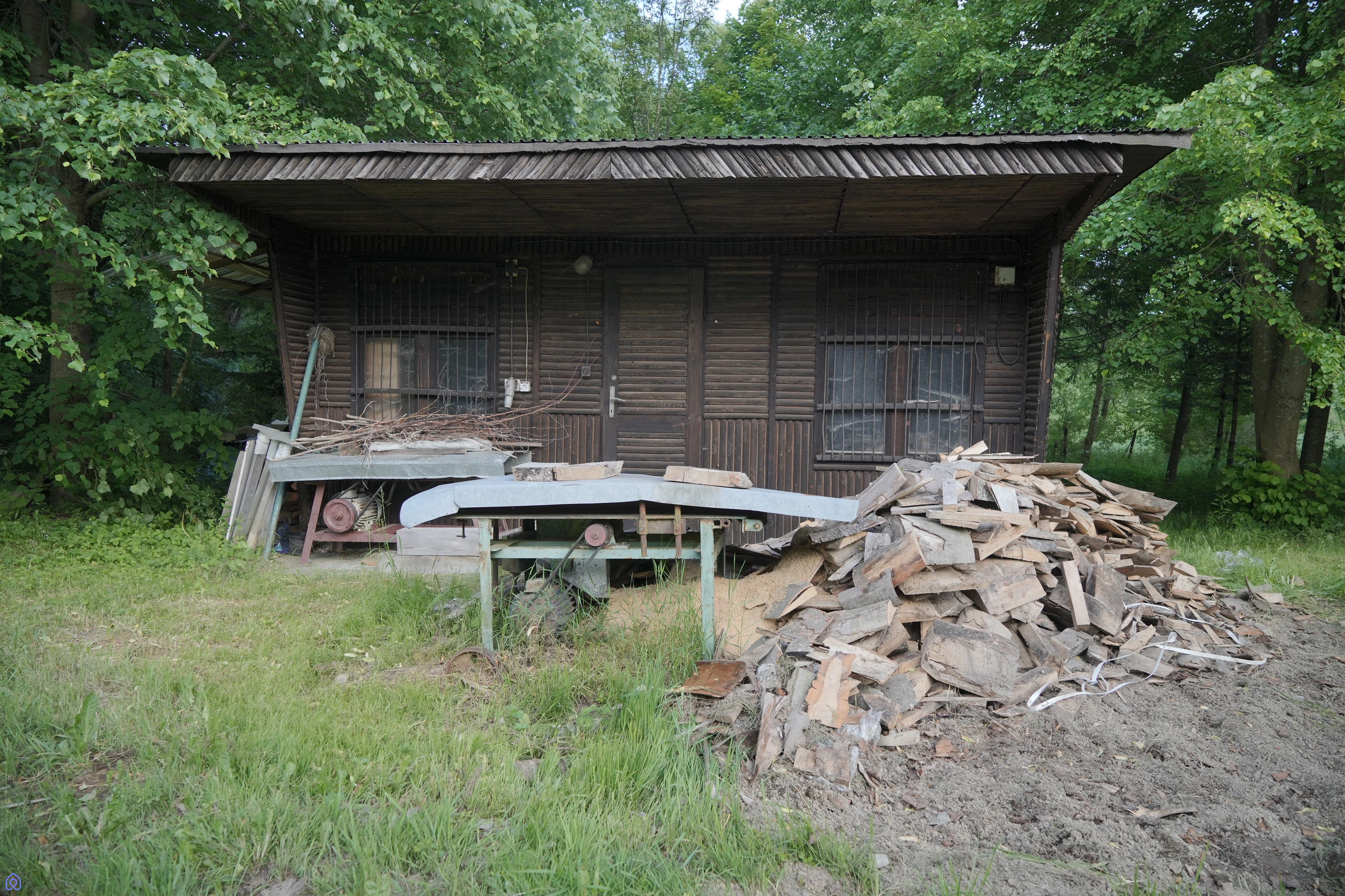 osypnik), maszyny stolarskie, narzędzia warsztatowe, sezonowane deski i
