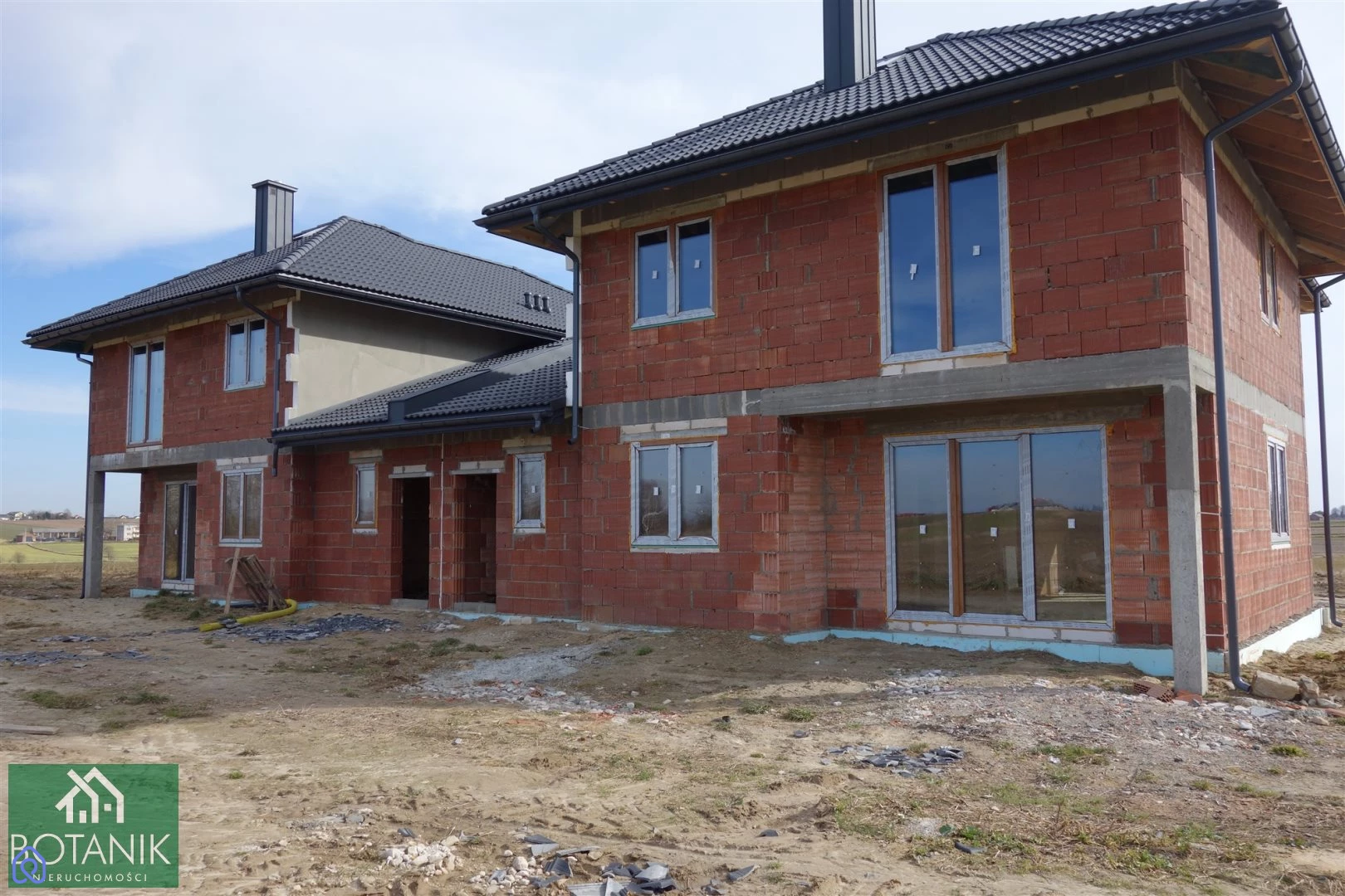 Dom usytuowany jest na niezagospodarowanej, prostokątnej działce o powierzchni 1100 m2 (do każdego).