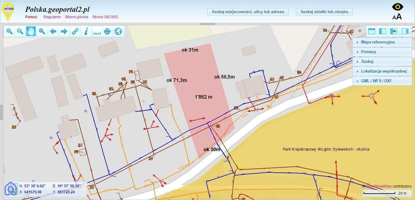 Jak widać na mapce tylko droga dzieli działkę od terenu będącego otuliną Parku Krajobrazowego Wzgórz Dylewskich.