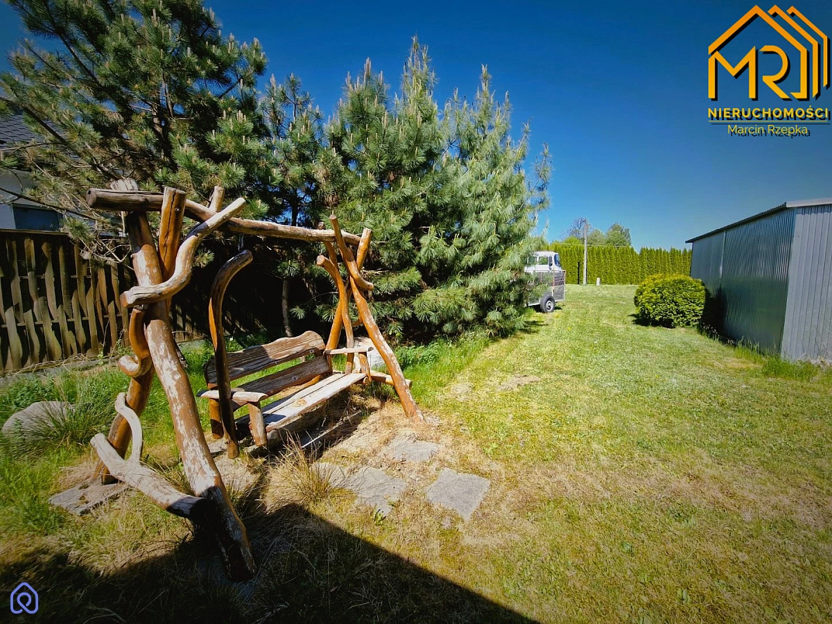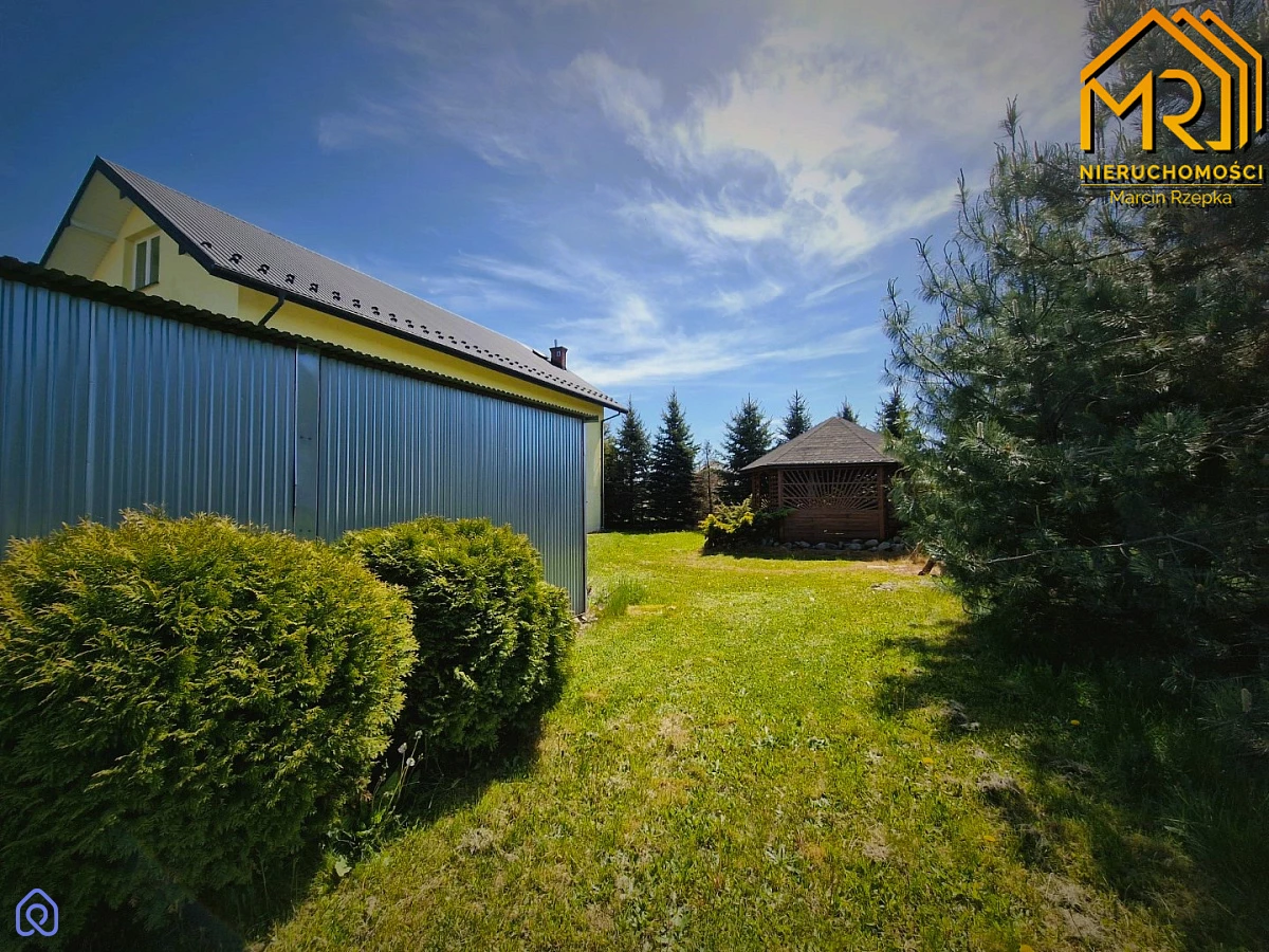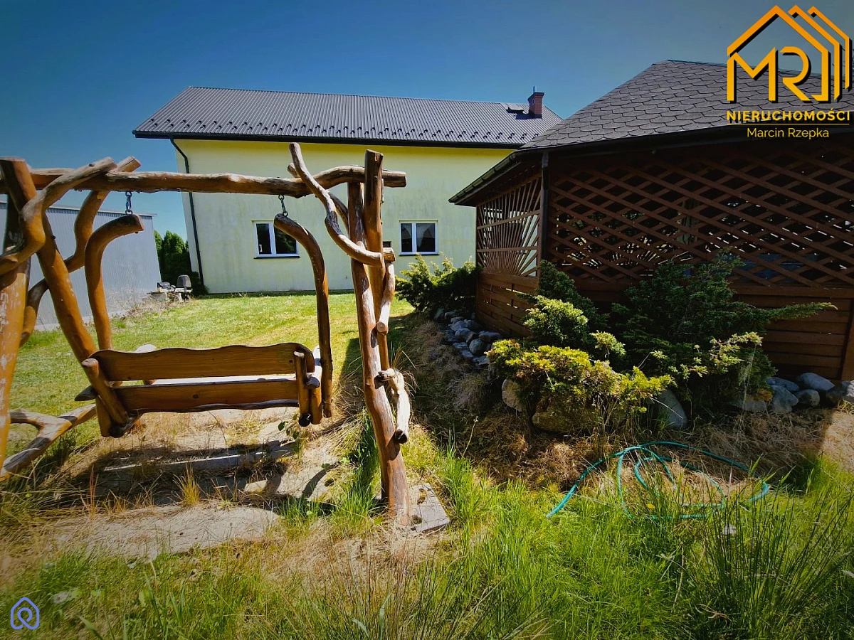 Na działce został zamontowany garaż blaszany, utwardzony solidnymi płytami betonowymi, drogowymi oraz wybudowana duża, drewniana altana wraz z huśtawką.