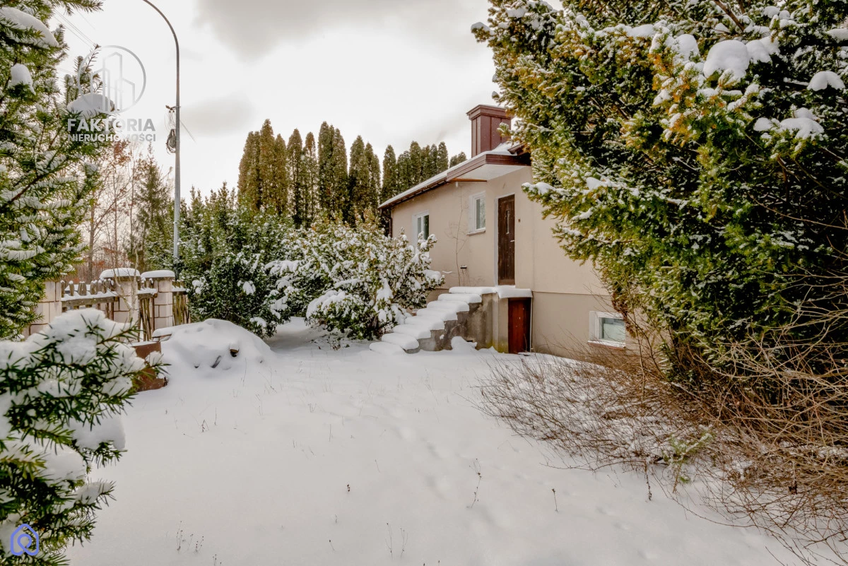 Dom znajduje się na dużej - 1364 m2, porośniętej drzewami działce. Działka w kształcie zbliżonym do kwadratu o wymiarach - szerokość wzdłuż drogi - 35 m2, długość - 40 m2. Teren ogrodzony.