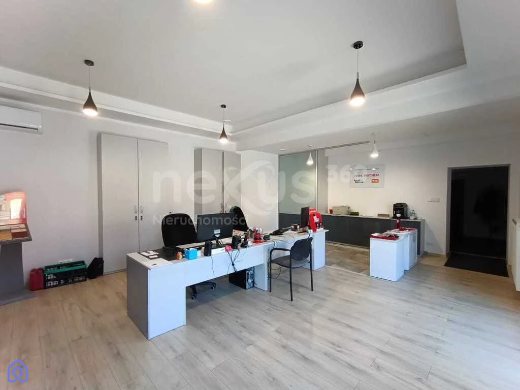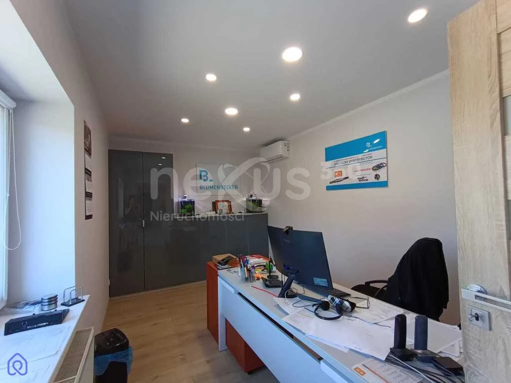 - część biurowa: klimatyzowana, składająca się z dużej sali sprzedaży, biura i sali narad w części głównej budynku, łazienka z wanną, prysznicem i wc, okna PVC z roletami zewnętrznymi, na posadzkach glazura
