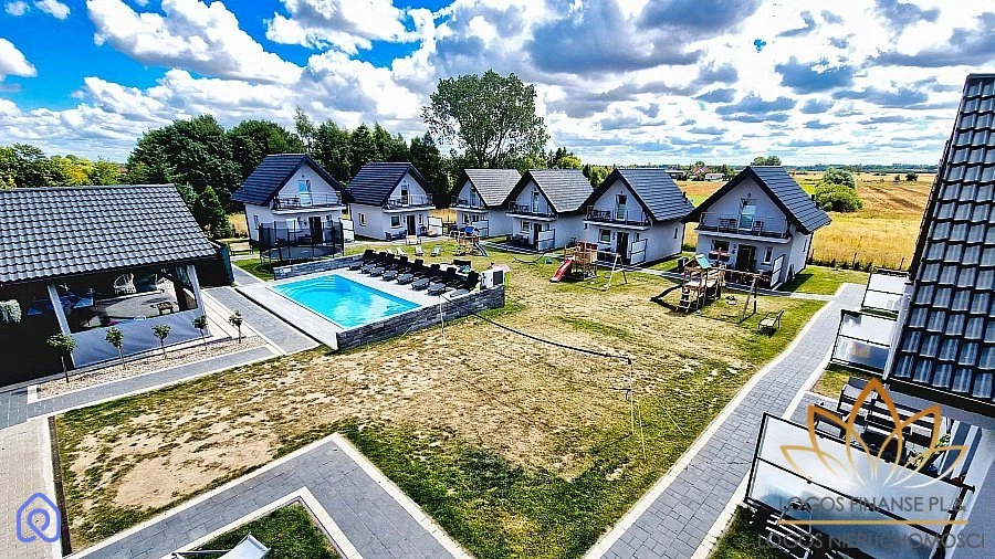 Na sprzedaż całoroczny ośrodek wypoczynkowy w Sarbinowie, usytuowany na działce o powierzchni 3168 m2, składający się z 9 komfortowych, murowanych domków letniskowych oraz domu mieszkalnego o powierzchni 143,05 m2. Idealna propozycja inwestycyjna nad morzem! Każdy domek o powierzchni ok. 60 m2 oferuje salon z aneksem kuchennym, łazienkę oraz dwie sypialnie, zapewniając miejsce dla maksymalnie 7 osób. Domki są wykończone w wysokim standardzie i wyposażone w instalacje: wodną, elektryczną oraz kanalizacyjną (szambo), co umożliwia całoroczne funkcjonowanie ośrodka. Na terenie ośrodka znajduje się również dwukondygnacyjny dom mieszkalny o powierzchni 143,05 m2, z wbudowanym garażem (34,59 m2) i kotłownią (10,90 m2). Dom posiada 5 pokoi, w tym przestronny salon z kuchnią, dwie łazienki, gabinet i sypialnie, idealne do zamieszkania lub wynajmu. Dodatkowe atrakcje ośrodka to podgrzewany basen, sauna, jacuzzi, ładowarka do samochodów elektrycznych zasilana panelami fotowoltaicznymi, plac zabaw, boisko sportowe oraz altana z grillem. Niskie koszty utrzymania dzięki fotowoltaice zmniejszają zużycie energii o 90%. Cena: 4.000.000 zł (do negocjacji). Zapraszamy do kontaktu i oględzin!