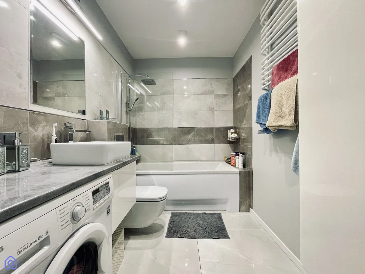 Układ mieszkania jest bardzo funkcjonalny, a dwustronna ekspozycja zapewnia doskonałe doświetlenie wnętrz przez cały dzień.