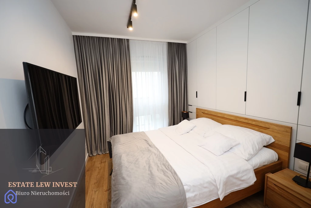 -sypialnia: duże łóżko, telewizor 55 cali, szafy,