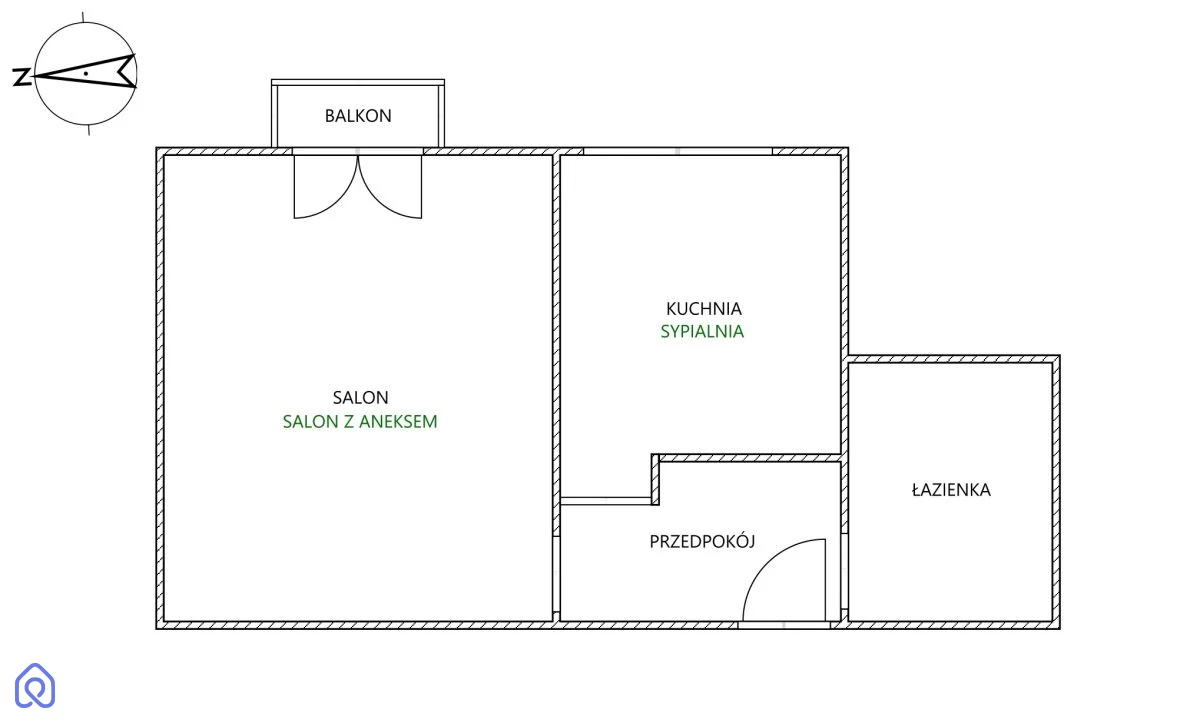 Istnieje możliwość zmiany układu mieszkania - można wydzielić np. salon z aneksem kuchennym i dodatkowy pokój, co zwiększa funkcjonalność mieszkania.