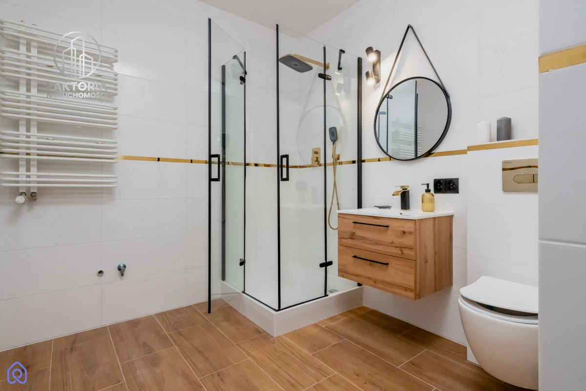 - przestronna łazienka wyposażona w kabinę prysznicową.