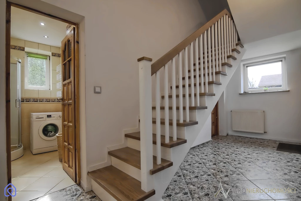 Na piętrze aż cztery przestronne sypialnie, duża wyremontowana niedawno łazienka z WC, oraz dodatkowo osobne WC.