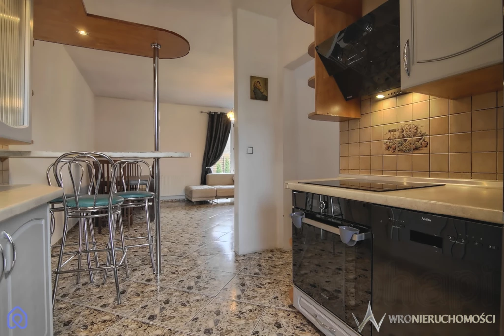 W kuchni nowy sprawny sprzęt AGD- zmywarka, piekarnik, płyta indukcyjna, lodówka z zamrażarką