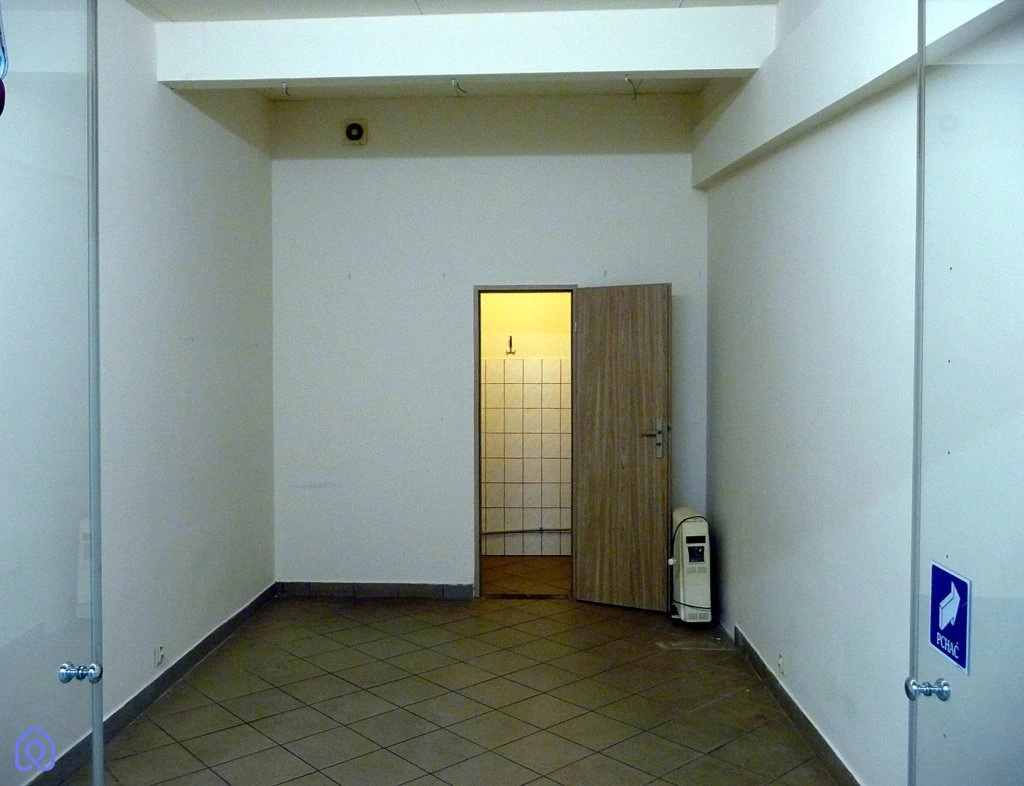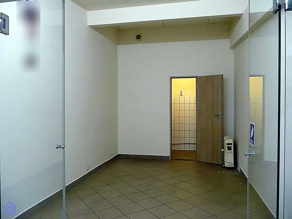 Niewielkie zaplecze socjalne oraz węzeł sanitarny. Witryna i szklane drzwi na całej szerokości lokalu. Zabezpieczone żaluzją antywłamaniową. Ściany malowane, podłoga wyłożona kafelkami.