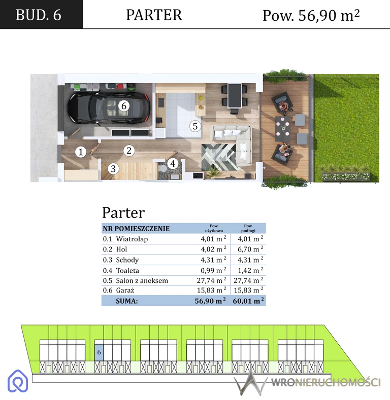 Najważniejsze informacje Powierzchnia domu: 113,72 m² Powierzchnia działki: ok. 314 m² (jeden z większych ogrodów w inwestycji) Garaż w bryle budynku + miejsce postojowe Liczba pokoi: 4 (możliwość 5) Stan: deweloperski Kameralne, zamknięte osiedle (26 domów)Zakończenie inwestycji zaplanowano na grudzień 2026 roku.