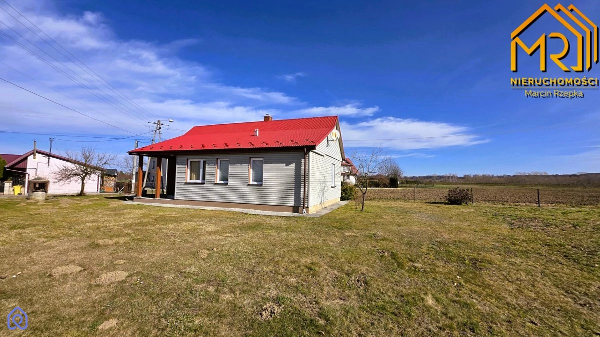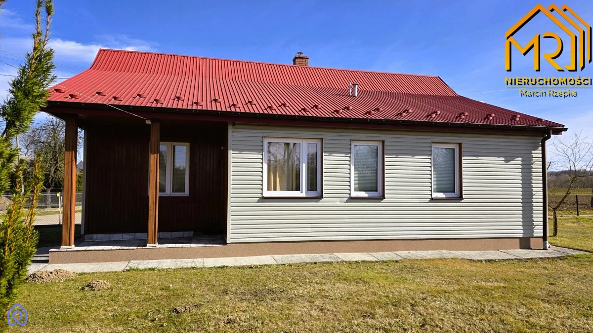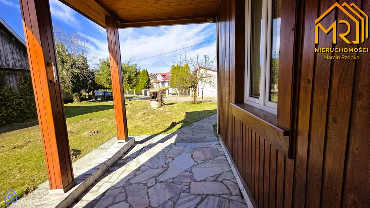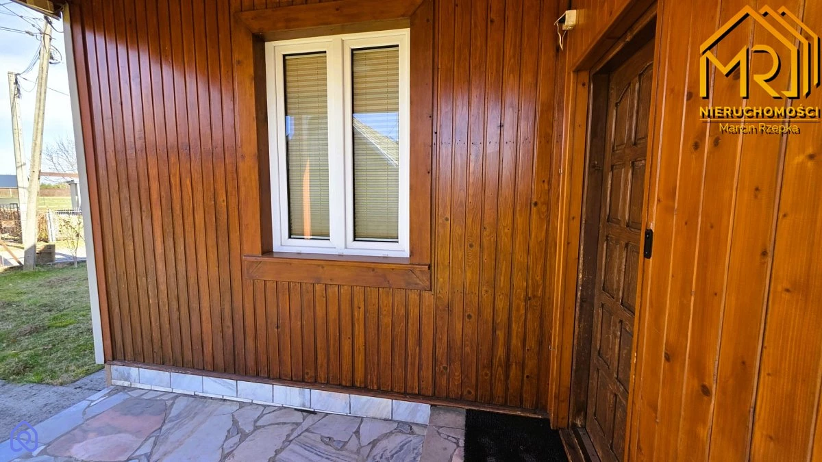 Dom drewniany na dużej działce gm. Wierzchosławice Na sprzedaż parterowy dom z lat 50 ubiegłego wieku położony w malowniczej miejscowości Mikołajowice, w gminie Wierzchosławice, powiat tarnowski. Nieruchomość usytuowana jest na przestronnej, 19-arowej działce o płaskim ukształtowaniu, w całości ogrodzonej siatką. Dom o powierzchni około 70 m2 został wzniesiony w konstrukcji szkieletowej z bali drewnianych. Składa się z ganku, funkcjonalnej kuchni, salonu, dwóch ustawnych pokoi, łazienki oraz strychu gospodarczego (wejście z zewnątrz). Wnętrza są w pełni umeblowane, na podłogach położono panele oraz płytki, a ściany wykończono płytami gipsowo-kartonowymi. Do drzwi wejściowych prowadzi mały taras wyłożony kamieniem. Dom posiada estetyczną elewację wykonaną z białego sidingu oraz solidny dwuspadowy dach pokryty blachą. Wymienione okna na PCV gwarantują dobrą izolację, a drewniany strop podkreśla charakter budynku. Ogrzewanie zapewnia sprawny, dwufunkcyjny piec. Nieruchomość jest w dobrym stanie, gotowa do zamieszkania lub lekkiego odświeżenia. Działka, na której stoi dom, graniczy bezpośrednio z asfaltową drogą gminną. Na posesji znajduje się również murowany budynek gospodarczy z dachem pokrytym dachówką z wymienionymi rynnami oraz wyposażony w blaszaną bramę garażową. Wszystkie media: prąd, gaz, kanalizacja, wodociąg, a także studnia na działce. Okolica zachwyca bliskością natury - w pobliżu przepływa rzeka Dunajec, a miłośnicy aktywnego wypoczynku docenią bliskość trasy rowerowej Velo Dunajec. W promieniu 850 metrów znajduje się szkoła podstawowa, natomiast do Wierzchosławic jest zaledwie 7,5 km, a do Tarnowa 11 km, co sprawia, że lokalizacja jest zarówno spokojna, jak i dobrze skomunikowana. Cena 299 000 złotych. Jeśli marzysz o urokliwym domu z duszą, położonym w cichej i malowniczej okolicy, ta oferta jest właśnie dla Ciebie! Serdecznie zapraszamy do kontaktu w celu otrzymania dodatkowych szczegółów oraz na prezentację 600 576 376