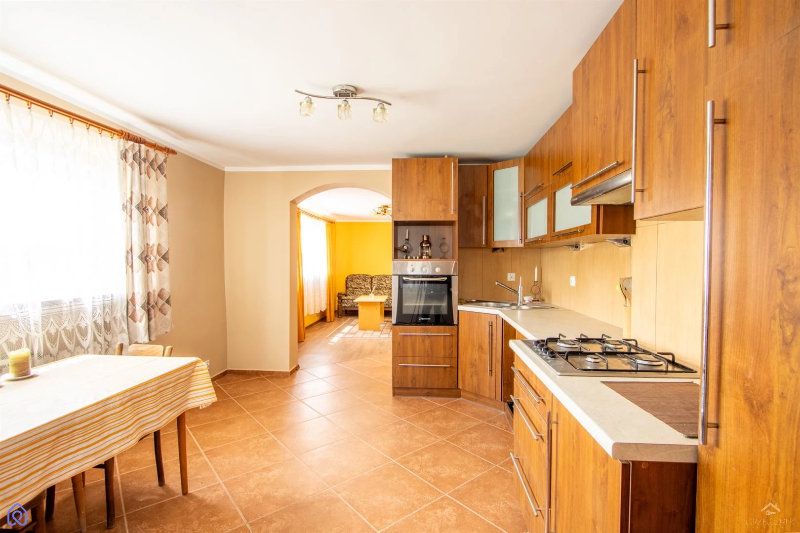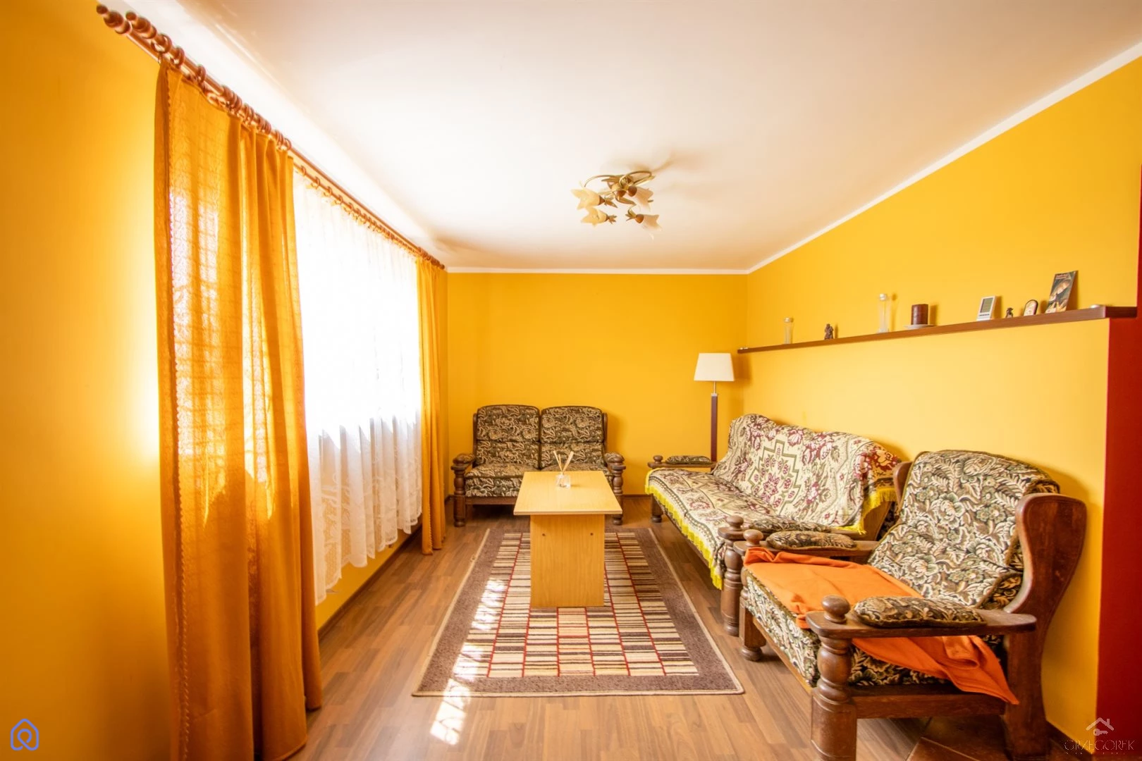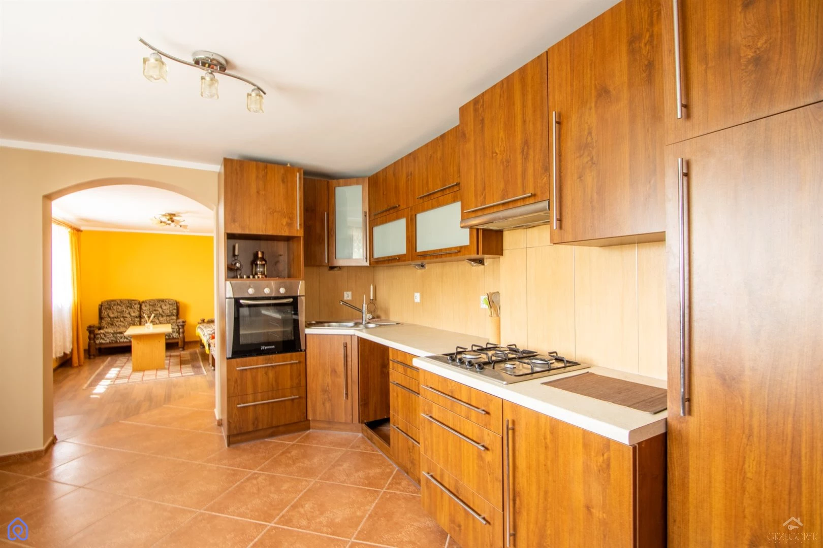 kuchnia z piecem kaflowym i dodatkowym pomieszczeniem za kuchnią łazienka z wc 3 pokoje - z czego jeden bardzo duży (połączony z dwóch)