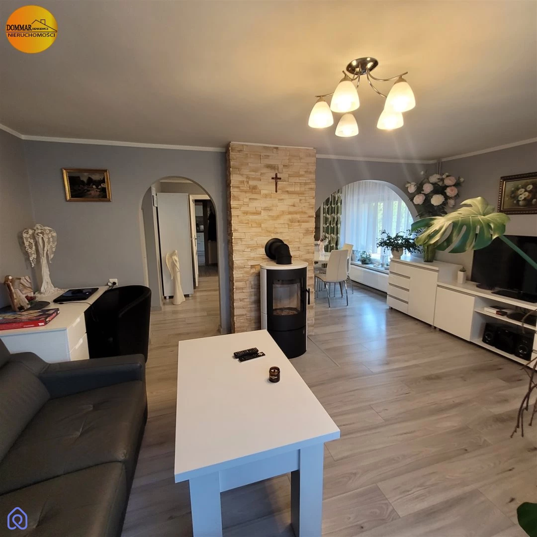 Nieruchomość posiada ogrzewanie gazowe oraz kominek, co zapewnia ciepło i przytulną atmosferę przez cały rok. Dodatkowym atutem jest garaż wolnostojący oraz wybrukowany podjazd.