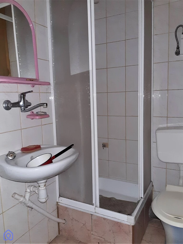 Na dole, w układzie przechodnim znajdują się: kuchnia i 2 pokoje, wiatrołap oraz łazienka z prysznicem.