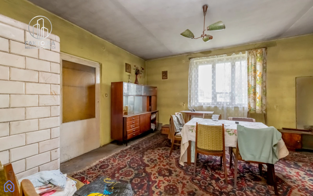 Dom z 1976 roku to parterowy, murowany obiekt z częściowym podpiwniczeniem. Składa się z dwóch pokoi, dwóch pomieszczeń kuchennych oraz łazienki z toaletą. Wyposażony jest w instalację elektryczną, wodną (woda z własnej studni) oraz kanalizacyjną (ścieki do szamba). Ogrzewanie zapewniają piece kaflowe i dwa ceramiczne trzonki kuchenne. Budynek wymaga gruntownego remontu.