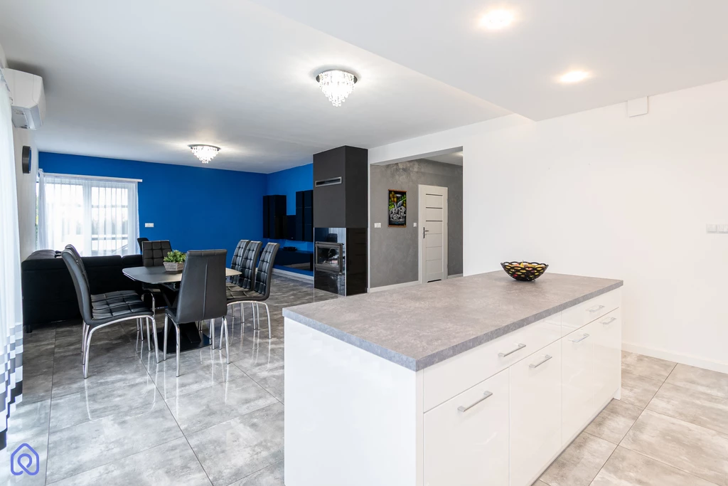 Salon z otwartą kuchnią – przestronny, z wyspą kuchenną