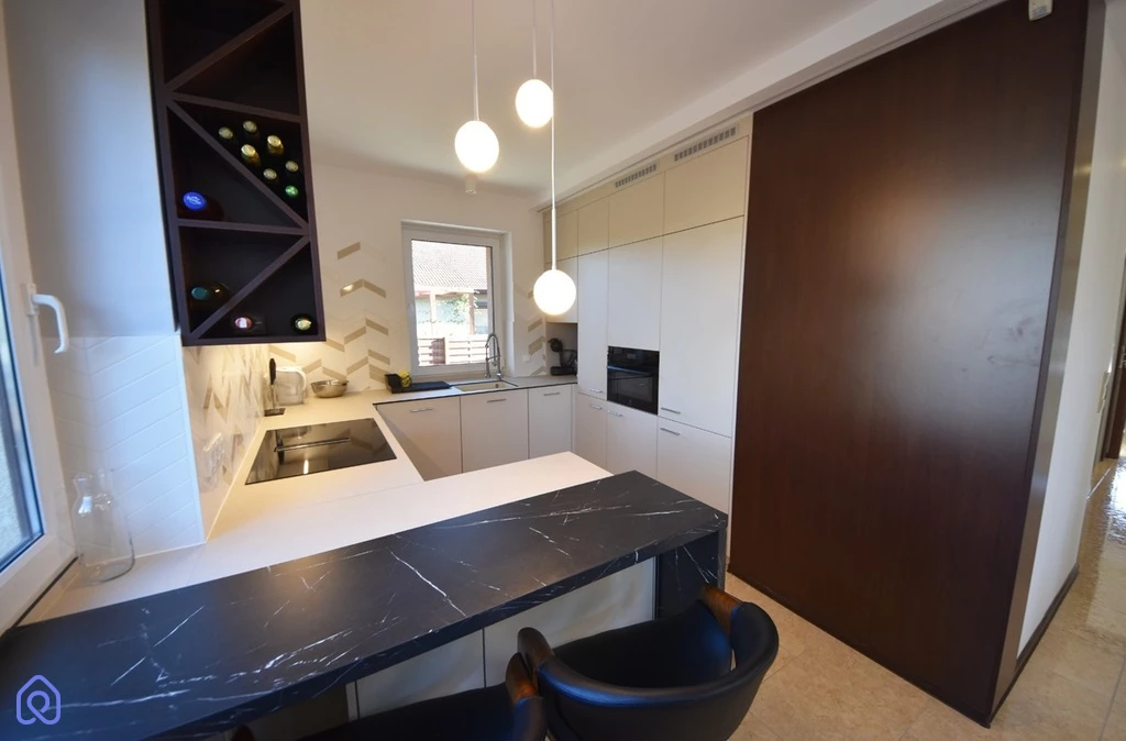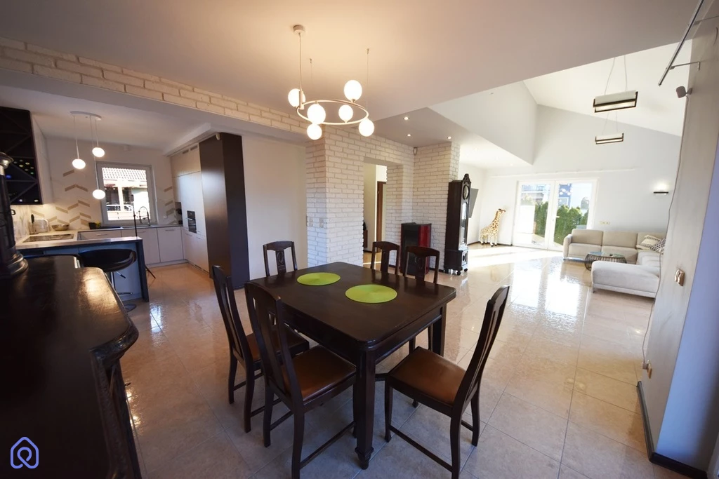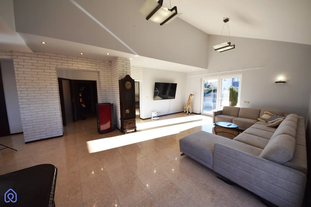 Dom wykonano i wykończono z materiałów najwyższej jakości a podział domu stwarza możliwość zamieszkiwania większej rodzinie lub dwóm pokoleniom z możliwością prowadzenia działalności usługowo - biurowej.