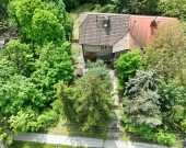 Działka o powierzchni 0,0592 ha w całości ogrodzona siatką z bramą wjazdową o nieregularnym kształcie. Obsadzona licznymi drzewami i krzewami ozdobnymi. Teren lekko nachylony.