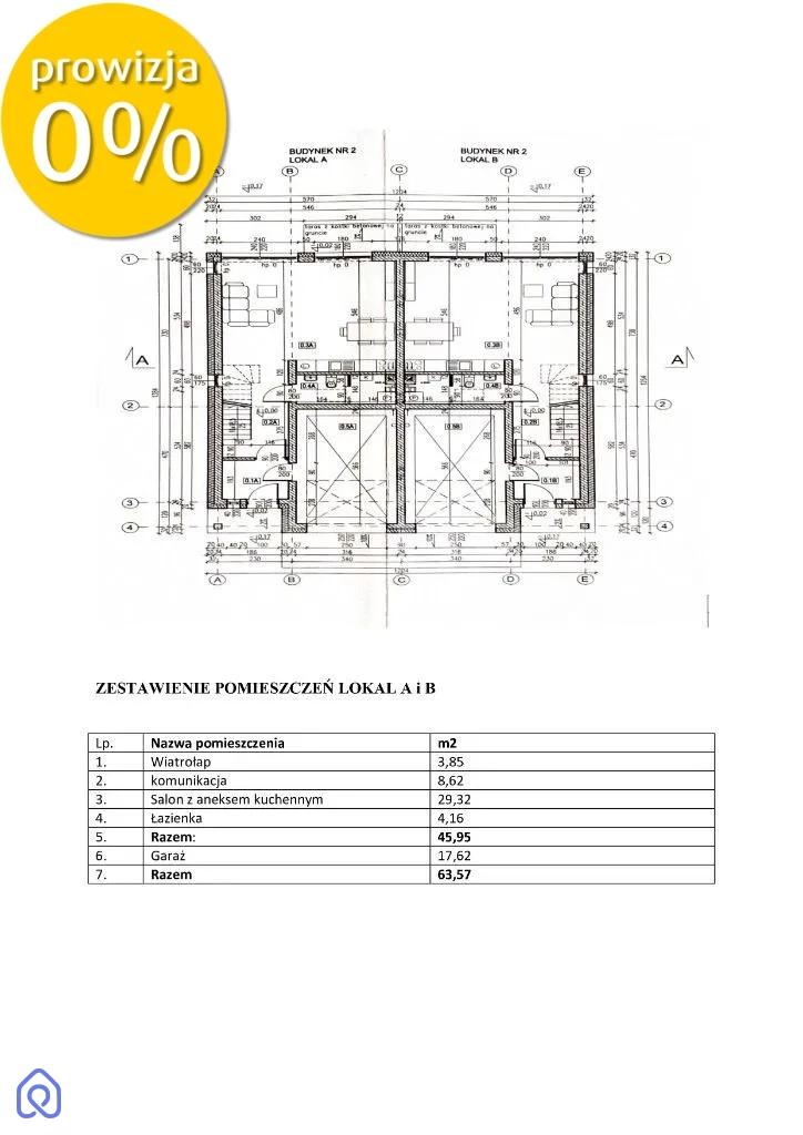 Parter: przestronny salon z jadalnią i aneksem kuchennym, łazienka, wiatrołap, garaż (17,62 m²).