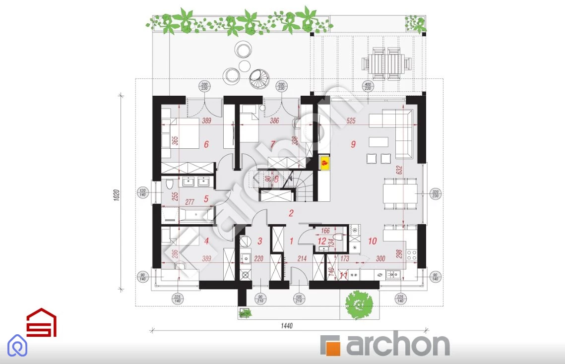 Nieruchomość została zbudowana według projektu „Dom pod jarząbem 12 N”- jest to dom parterowy o powierzchni użytkowej 112,94 m2 z poddaszem do adaptacji. Cechuje go nowoczesna bryła, modna kolorystyka, funkcjonalne wnętrze z klarownym podziałem na strefy dzienne i nocne.