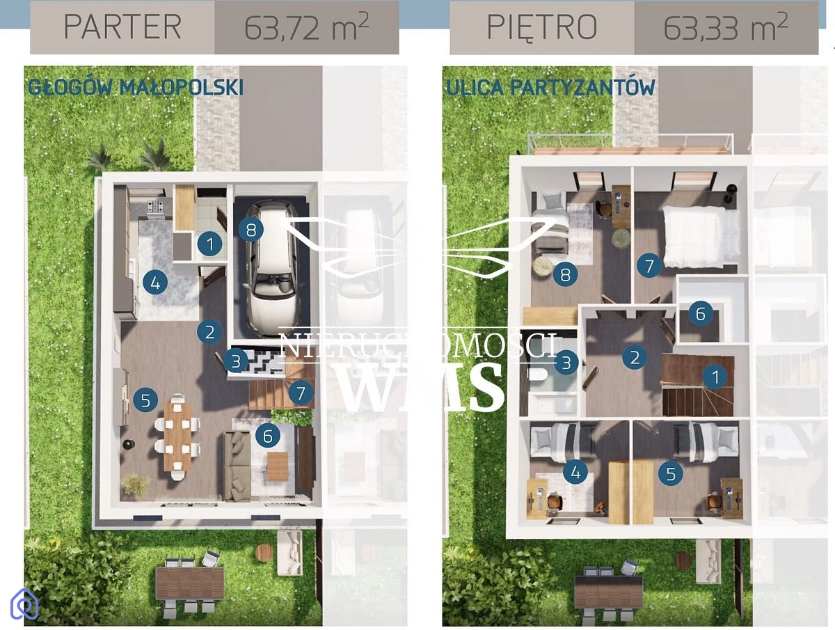 W ofercie Biura Nieruchomości WMS na sprzedaż dom w zabudowie bliźniaczej w stanie deweloperskim o numerze B3/M5 Powierzchnia domu to 127,05 m2 - powierzchnia ogródka 123,24 m2 W skład nieruchomości wchodzi: Partner: - Wiatrołap - Korytarz - Toaleta - Kuchnia - Jadalnia - Salon - Klatka schodowa Pietro: - Korytarz Łazienka - 3 pokoje - Garderoba - Sypialnia Dom zasilany pompą ciepła - jest w pełni ekologiczny a zarazem ekonomiczny w użytkowaniu. Przewidywany termin oddania I kwartał 2026 roku NIE PŁACISZ PODATKU PCC 2% W ofercie 11 lokali lewostronny oraz 11 lokali prawostronnych z rożnej wielkości areałem ogrodu - sprawdź pozostałą ofertę i wybierz coś idealnego dla siebie!!! Zadzwoń i umów się na prezentację. Katarzyna Koryl tel:885 025 377 e-mail: kkoryl@nieruchomosciwms.pl NIERUCHOMOŚCI WMS tel. 606 106 968 www.nieruchomosciwms.pl biuro@nieruchomosciwms.pl Zapraszamy do zapoznania się z wyjątkową ofertą sprzedaży nowo powstałych domów jednorodzinnych w zabudowie bliźniaczej. Usytuowane w malowniczej i dynamicznie rozwijającej się lokalizacji Głogowa Małopolskiego, oferują idealne połączenie komfortu życia z doskonałą komunikacją miejską. Dzięki bliskości przystanków autobusowych, kolei podmiejskiej oraz szybkiemu dostępowi do autostrad i trasy S19, dojazd do Rzeszowa oraz pobliskich stref przemysłowych w Rogoźnicy i Jasionce jest niezwykle sprawny i szybki. Nowoczesna inwestycja obejmuje domy o powierzchni użytkowej 127 m2, które zostały zaprojektowane z myślą o wymagających klientach szukających przestrzeni i wygody. Każdy z pięciu pokoi rozlokowanych na dwóch kondygnacjach zapewnia funkcjonalność i swobodę aranżacji wnętrz. Budynki powstają z użyciem wysokiej klasy materiałów, takich jak pustak, a ich dachy pokryte są estetyczną dachówką. Budynki wyposażone są w innowacyjne rozwiązania, jak pompa ciepła, która gwarantuje efektywne ogrzewanie przy minimalnych kosztach eksploatacji. Położenie w pobliżu sklepów (Lidl, Biedronka, Stokrotka), placówek edukacyjnych (szkoła podstawowa, liceum), przedszkoli, żłobków, ośrodków zdrowia oraz atrakcji rekreacyjnych, takich jak stadnina koni, siłownia, basen i kort tenisowy, czyni tę ofertę jeszcze bardziej atrakcyjną. Bliskość lasów stwarza doskonałe warunki do aktywnego wypoczynku i obcowania z naturą, co z pewnością docenią miłośnicy spędzania czasu na świeżym powietrzu. Domy dostępne są w stanie deweloperskim, co pozwala na aranżację wnętrz zgodnie z indywidualnymi potrzebami i preferencjami. Garaż w bryle budynku oraz działka o powierzchni od 79,24 m2 do 450 m2 z ogrodzeniem z siatki, a także utwardzona droga dojazdowa, stanowią o dodatkowym komforcie użytkowania tej nieruchomości. Planujemy zakończenie budowy na rok 2026, a pierwsze domy będą dostępne już od 2025 roku. Zapraszamy do kontaktu w celu uzyskania bliższych informacji i umówienia się na prezentację tej unikalnej inwestycji. Niniejsze ogłoszenie nie stanowi oferty w rozumieniu przepisów Kodeksu Cywilnego oraz innych właściwych przepisów prawnych, a dane w niej zawarte mają jedynie charakter informacyjny.