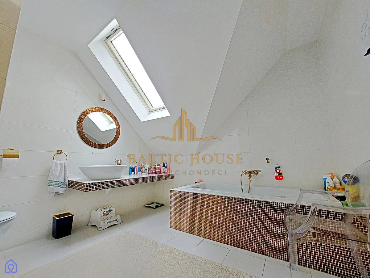 | DOM WOLNOSTOJĄCY | GOTOWY DO ZAMIESZKANIA | CICHA OKOLICA | PRZYSTANEK PKP | GARAŻ | MRZEZINO | Na sprzedaż duży dom o całkowitej powierzchni 237.77m2 wraz z garażem oraz dużą piwnicą składającą się z trzech pomieszczeń. Działka na której znajduje się dom ma powierzchnię 812m2, co daje dużo możliwości nasadzeń oraz przystosowanie ogrodu pod własne preferencje. Dom został wybudowany i oddany do użytku w 2013 roku. Na dachu budynku znajduje się 13 paneli fotowoltaicznych, dzięki których woda w domu jest ogrzewana przez grzałkę. PARTER Na parterze znajduje się przestronny pokój dzienny o powierzchni 28 m2 z bezpośrednim wyjściem na taras ponad 40m2. Kuchnia o metrażu 12 m2 została zaprojektowana jako osobne pomieszczenie, z możliwością otwarcia jej na strefę dzienną. Dodatkowy pokój o powierzchni 8 m2 może pełnić funkcję gabinetu, garderoby lub pokoju gościnnego. Na parterze znajduje się również łazienka z prysznicem (5 m2) oraz hol i korytarz (12 m2) zapewniające wygodną komunikację między pomieszczeniami. W bryłę budynku wkomponowano garaż o powierzchni 19 m2 z wejściem z poziomu parteru. PIĘTRO Główna sypialnia 24 m2 z wyjściem na balkon oraz dużą garderobą. Druga sypialnia 20 m2- idealna jako pokój dziecięcy, gościnny lub prywatna przestrzeń do pracy. Trzecia sypialnia 11 m2 z dostępem do balkonu. Czwarta sypialnia 13 m2, ustawna i jasna, z możliwością dowolnej aranżacji, Łazienka o powierzchni 9,4 m2 wyposażona w wannę oraz duże okno dachowe, zapewniające rozświetlenie całej łazienki. Wejście na poddasze poprzez składane schody, dzięki czemu nie przeszkadzają w codziennym użytkowaniu. ATUTY NIERUCHOMOŚCI - Lokalizacja zapewniająca spokój i cisze z jednoczesną bliskością do przystanku kolejowego PKP oraz PKS. - Ogród z orientacją południową co zapewnia dużo słońca przez cały dzień - Duży salon z wyjściem na taras - Garaż posiadający kanał, który pozwala m.in. na samodzielną wymianę oleju w samochodzie - Panele fotowoltaiczne, dzięki którym rachunki są niższe LOKALIZACJA - W miejscowości znajdują się szkoła, przedszkole, sklepy spożywcze, apteka, ośrodek zdrowia - wszystko w zasięgu ręki. - Blisko morza i atrakcji turystycznych - idealna baza wypadowa nad Zatokę Pucką oraz na Półwysep Helski. - Doskonała komunikacja - bliskość stacji PKP umożliwia szybki dojazd do Trójmiasta (Gdynia, Gdańsk, Sopot). Zapraszam na prezentację. Adam Baza 533 400 878 a.baza@baltichouse-nieruchomosci.pl KUP Z NAMI - KORZYSTNIE I BEZPIECZNIE! - bezpieczny zakup z polisą OC Pośrednika w PZU S.A., - najlepsza cena zakupu, - skuteczna i bezpłatna pomoc w uzyskaniu kredytu hipotecznego, - jesteśmy do Twojej dyspozycji 7 dni w tygodniu! Zapraszamy do kontaktu telefonicznego i mailowego, - preferencyjne warunki czynności notarialnych oraz bezpłatna weryfikacja stanu prawnego nieruchomości. Przedstawiona oferta ma charakter informacyjny, nie stanowi oferty handlowej w rozumieniu Art. 66 par.1 Kodeksu Cywilnego.