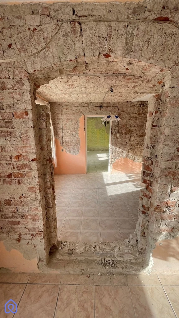 Budynek jednokondygnacyjny, w trakcie remontu (częściowo skute stare tynki, wyburzona ścianka działowa) z oknami o profilach PCV, dachem dwu spadowym krytym dachówką cementową. Nieruchomość składa się z trzech pokoi, kuchni, łazienki. Wysokie poddasze oraz budynki gospodarcze do zagospodarowania - po remoncie. W cenie nieruchomości znajduje się dachówka ceramiczna oraz niezbędny materiał do remontu dachu. Media: prąd, woda, gaz (wydana decyzja o przyłączeniu, planowane przyłączenie luty 2024), szambo na posesji
