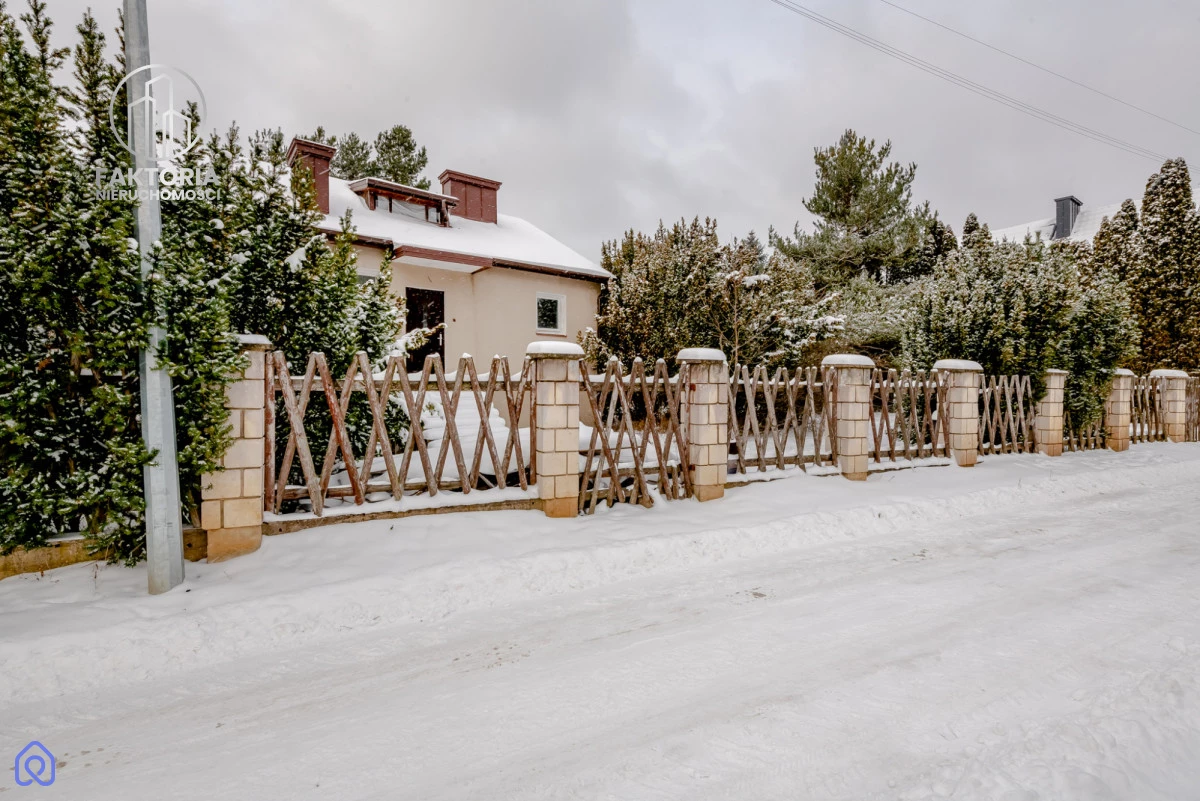 Dom znajduje się na dużej - 1364 m2, porośniętej drzewami działce. Działka w kształcie zbliżonym do kwadratu o wymiarach - szerokość wzdłuż drogi - 35 m2, długość - 40 m2. Teren ogrodzony.