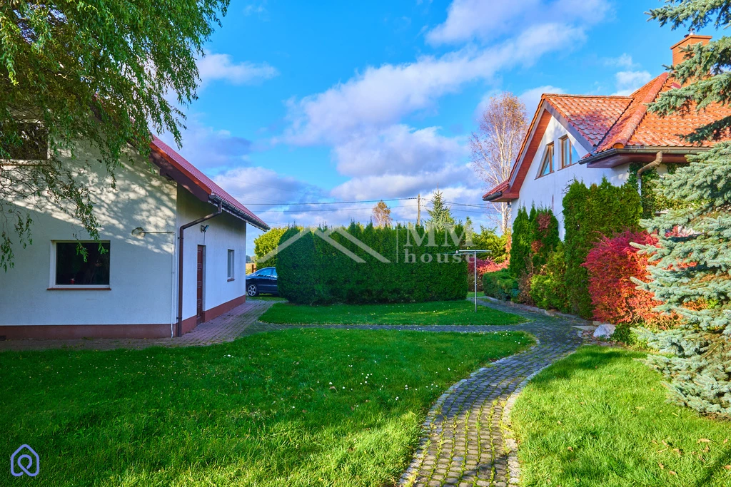 Druga działka mieści pomieszczenia gospodarcze oraz przepiękny ogród – starannie zaaranżowany, z licznymi nasadzeniami, będący prawdziwym oczkiem w głowie obecnych właścicieli.