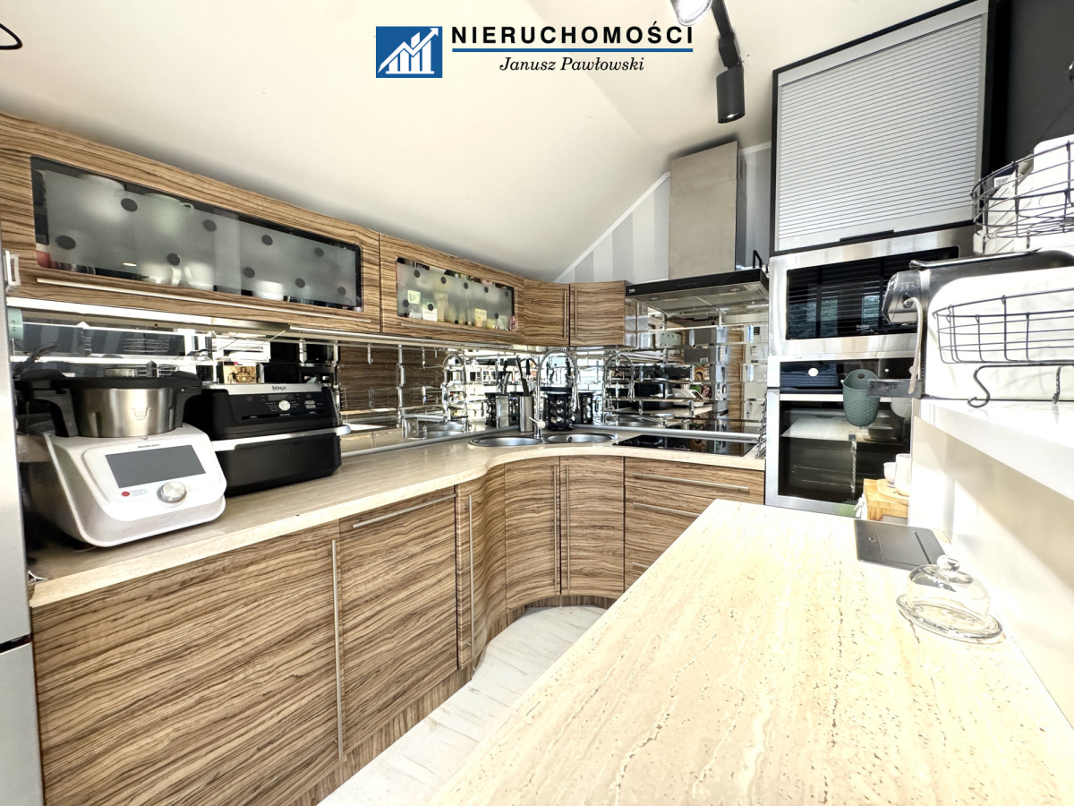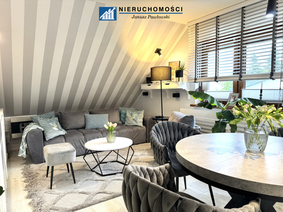 salon z aneksem kuchennym 3 sypialnie łazienka przynależna komórka lokatorska dostęp do strychu garaż w bryle budynku (20,84 m²) ogródek ok. 700 m² z osobnym wejściem