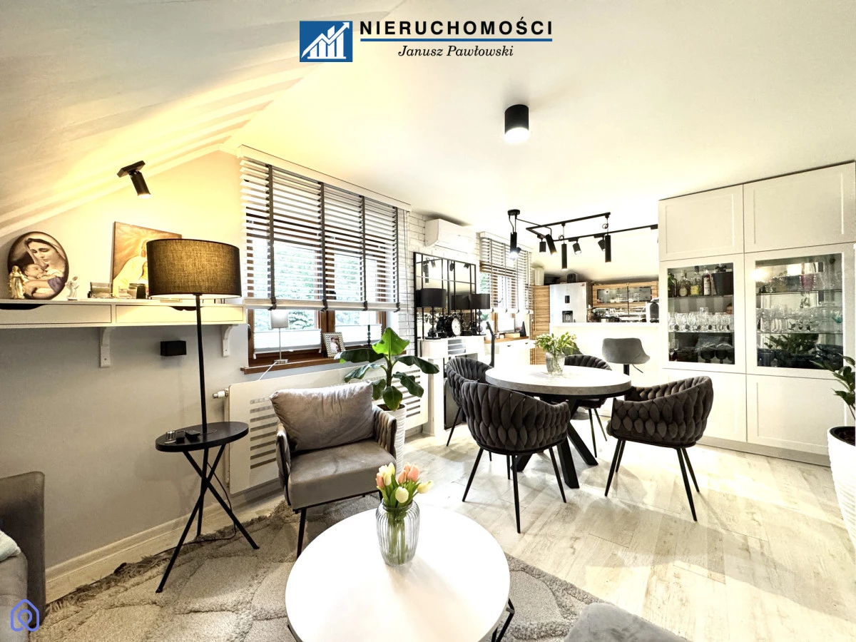 Mieszkanie nr 2 (Piętro - 89,56 m² po podłodze): Nowoczesny, przestronny salon z aneksem kuchennym, 3 ustawne sypialnie oraz łazienka. Dodatkowym atutem jest klimatyzacja, dostęp do strychu oraz garaż w bryle budynku (20,84 m²).