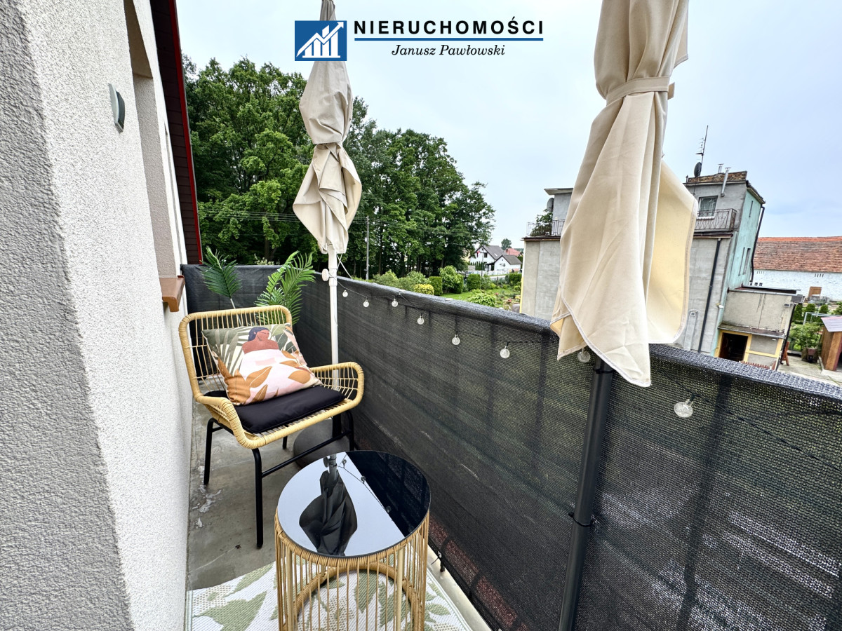 Oba mieszkania po generalnym remoncie: wymienione instalacje, nowe okna dwuszybowe z roletami antywłamaniowymi, ogrzewanie piecem dwufunkcyjnym (ciepła woda + ogrzewanie), klimatyzacja (w mieszkaniu na piętrze)