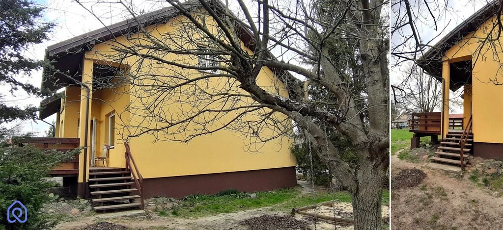 Dom jest całkowicie podpiwniczony, parterowy z poddaszem mieszkalnym, ma ok. 240 m.kw powierzchni całkowitej, po 80 m.kw. na każdym poziomie domu.