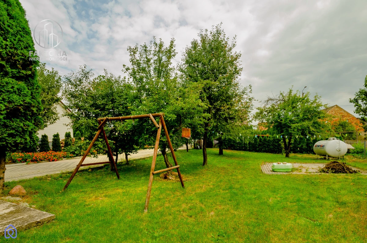 Działka, na której znajduje się dom, ma powierzchnię 935 m2. Ze wszystkich stron ogrodzona. Teren zadbany, z nasadzeniami drzew owocowych oraz rabatami kwiatowymi. Do domu wykonany podjazd z kostki brukowej.