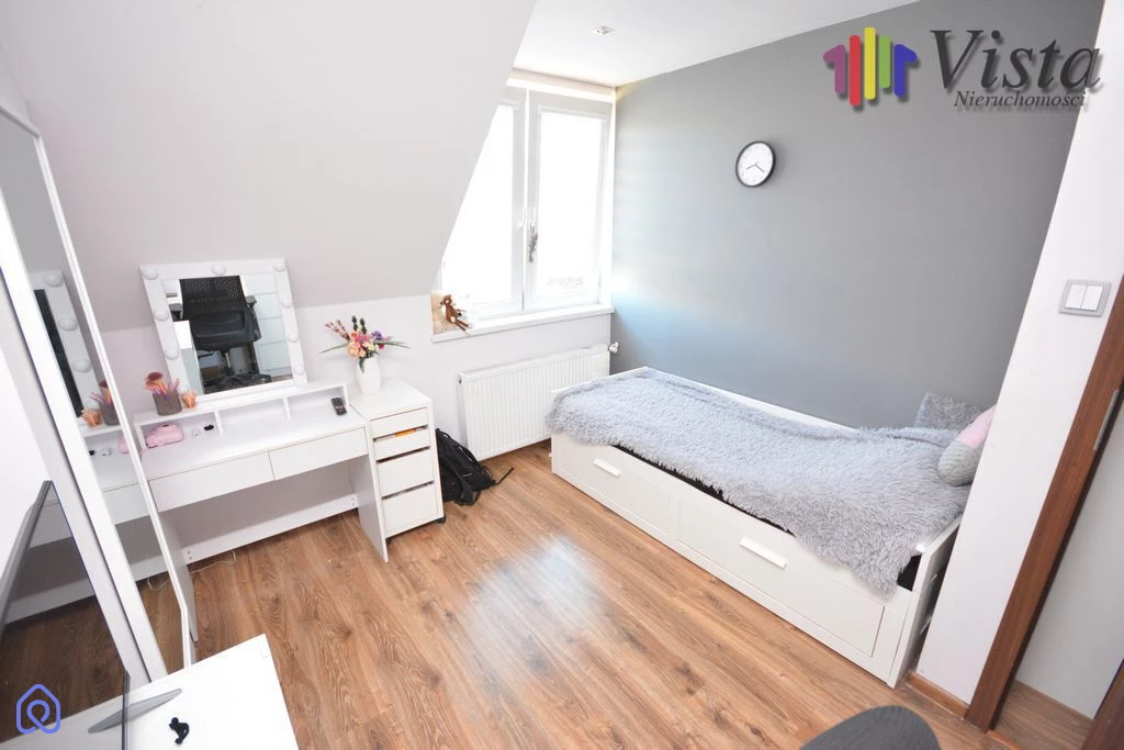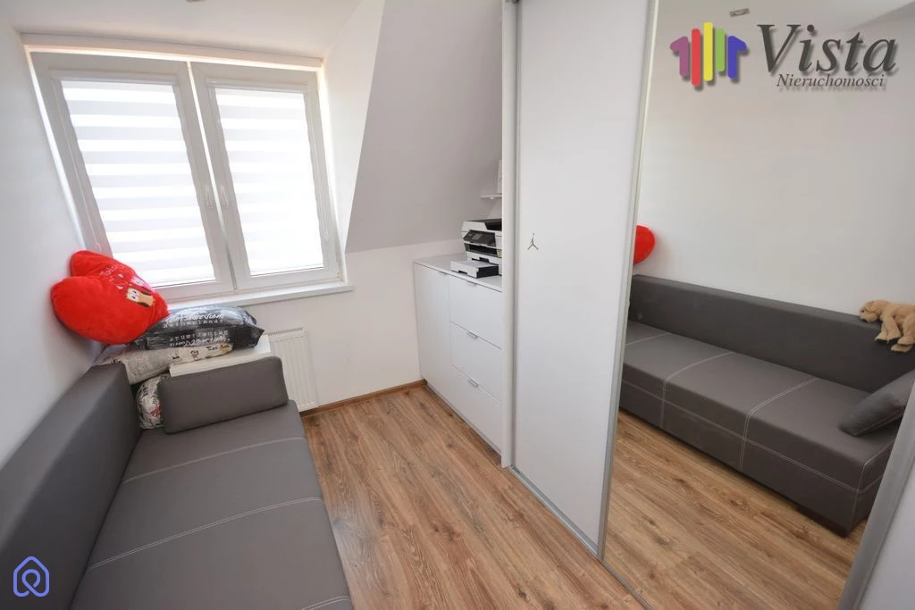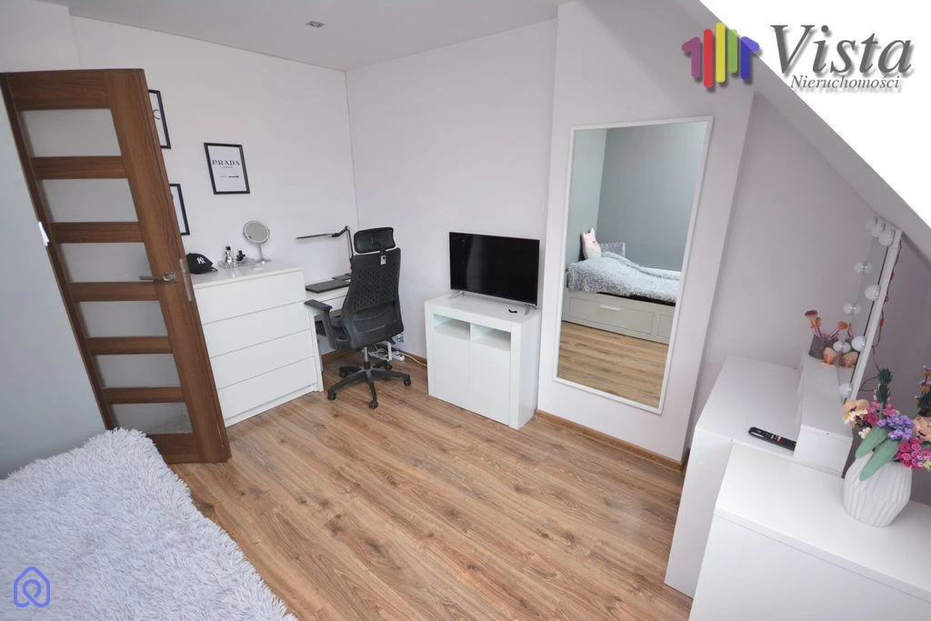 Piętro: trzy sypialnie, w tym jedna z wyjściem na taras, oraz komfortowa łazienka z WC i prysznicem. Remont piętra przeprowadzono w 2017 roku, z wymianą wszystkich instalacji oraz odświeżeniem ścian i podłóg. W 2023 roku zamontowano nową, pojemną szafę w zabudowie.