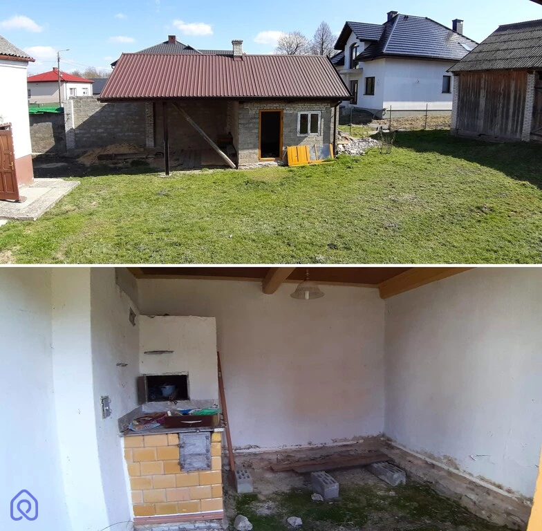 -murowana obora z 2 pomieszczeniami na dole i ogromnym, wysokim strychem,