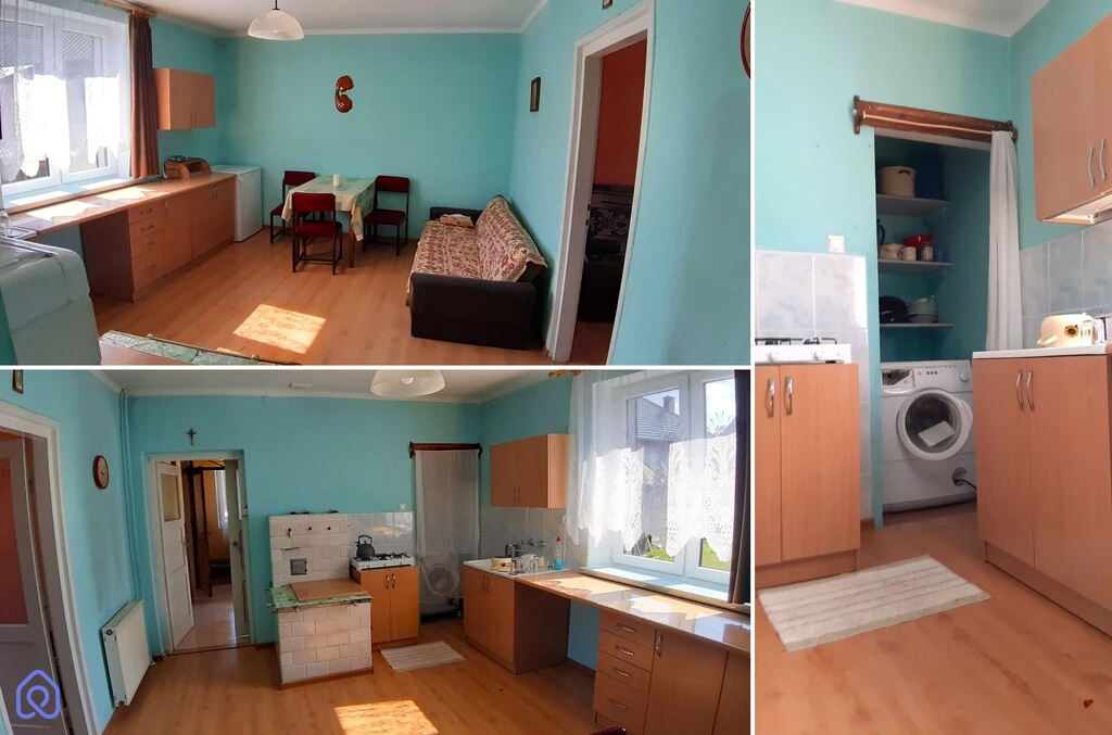 -kuchnia z jadalnią (z piecem węglowym) oraz z wnęką na pralkę i magazynek środków gospodarczych,