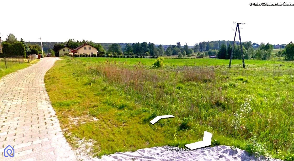 Teren obniżony w stosunku do ulicy, o nieregularnym kształcie zbliżonym do prostokąta o boku ok. 60 m równoległym do ul. Żorskiej oraz szerokości ok. 80 m - droga dojazdowa kostka brukowa. Parcela składa się z trzech niezależnych działek, każda z księga wieczystą.