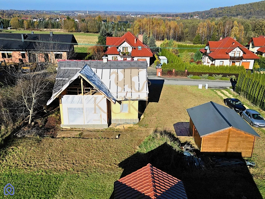 Biuro Kukla Nieruchomości przedstawia nowy drewniany dom na sprzedaż o powierzchni użytkowej 103,5 m², usytuowany na widokowej działce o powierzchni 8,7 ara, w malowniczej miejscowości Sułkowice Łęg.